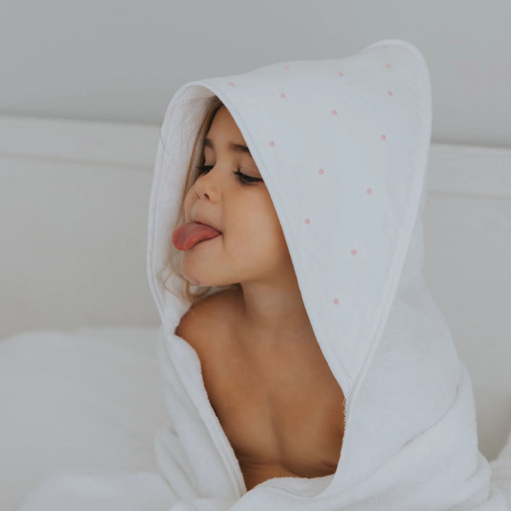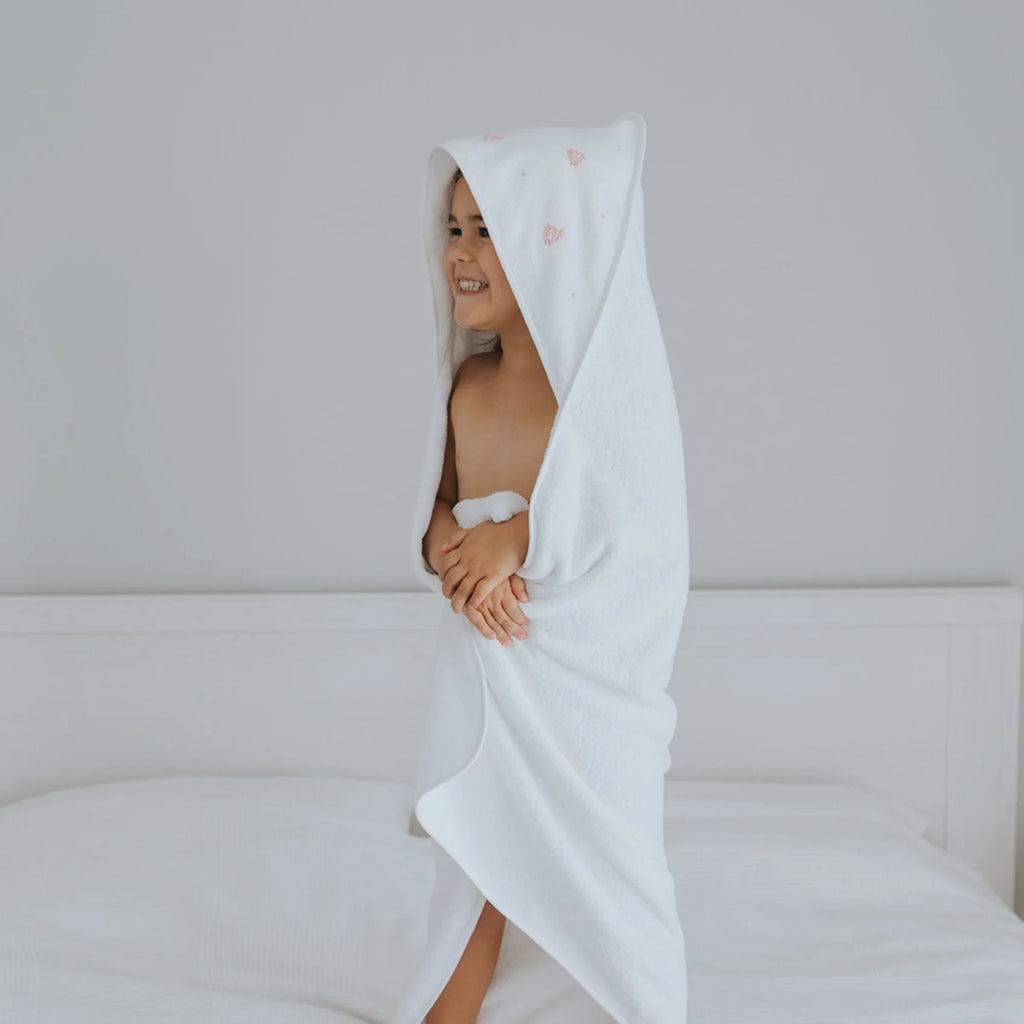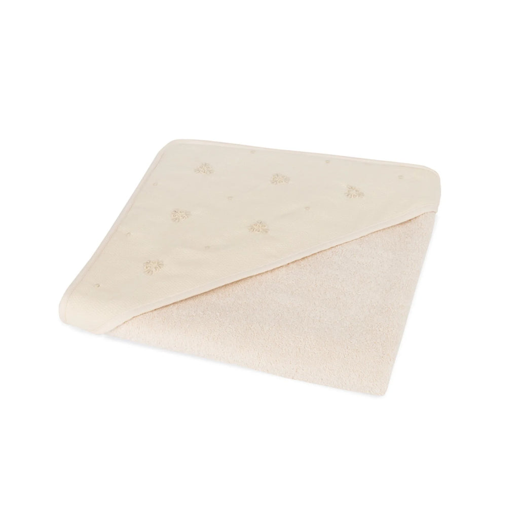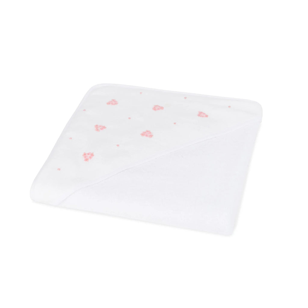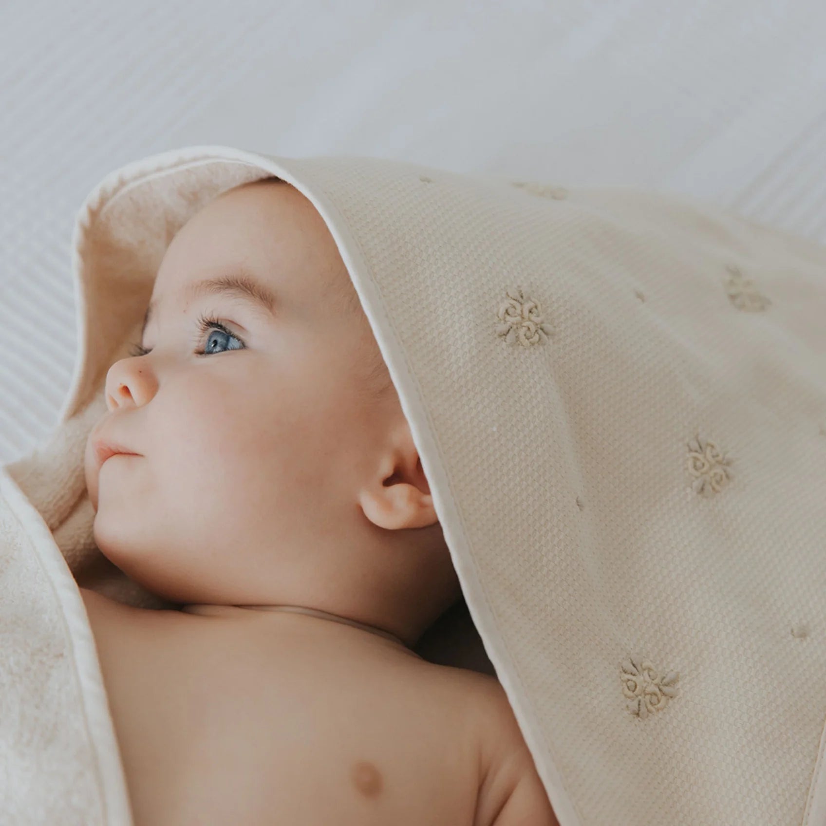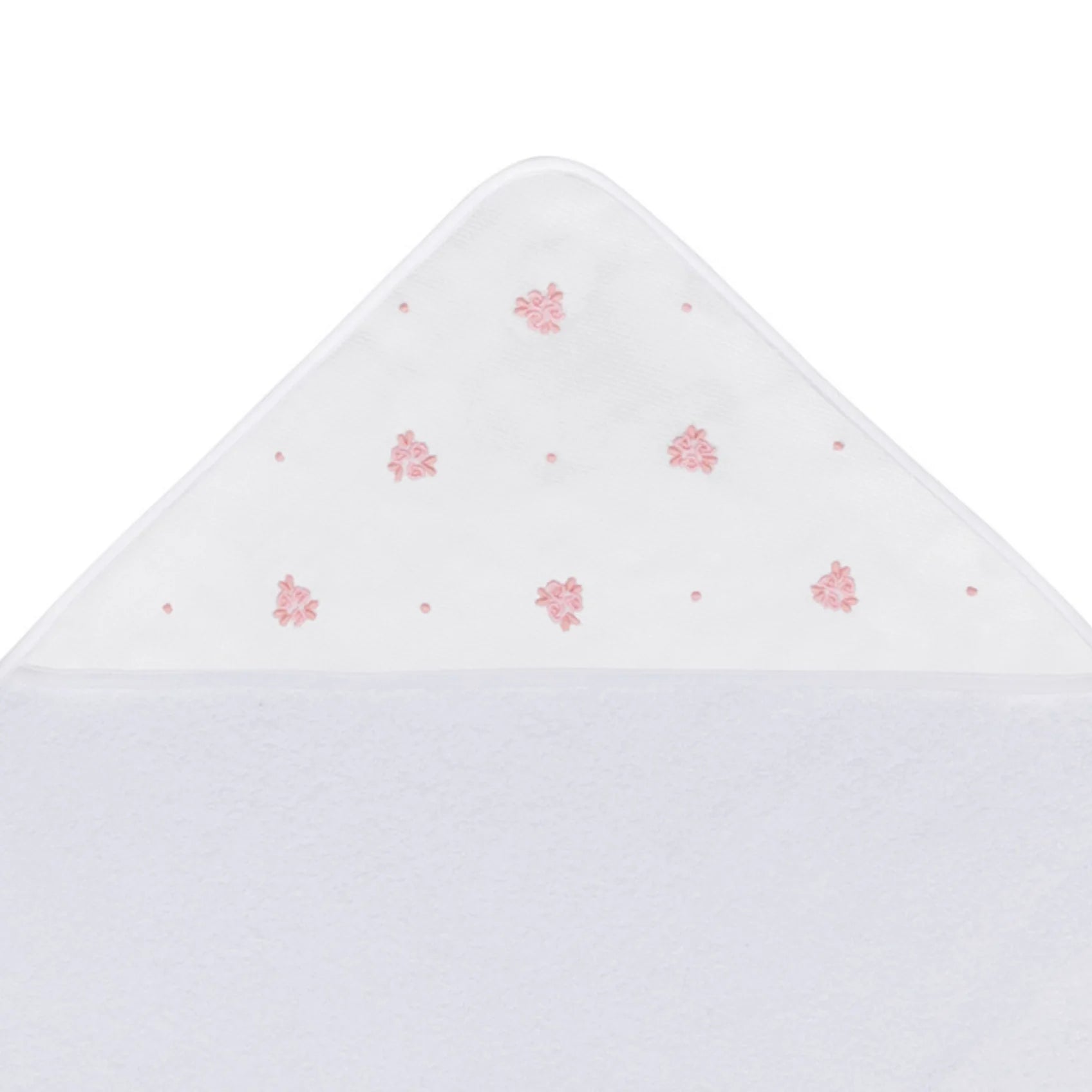 Esta toalla de bebé está confeccionada en Portugal y pensada para ofrecer una suavidad excepcional a la piel delicada de los más pequeños. Cada pieza está bordada a mano siguiendo técnicas tradicionales de la isla de Madeira, lo que le aporta un encanto único y un acabado artesanal muy cuidado.