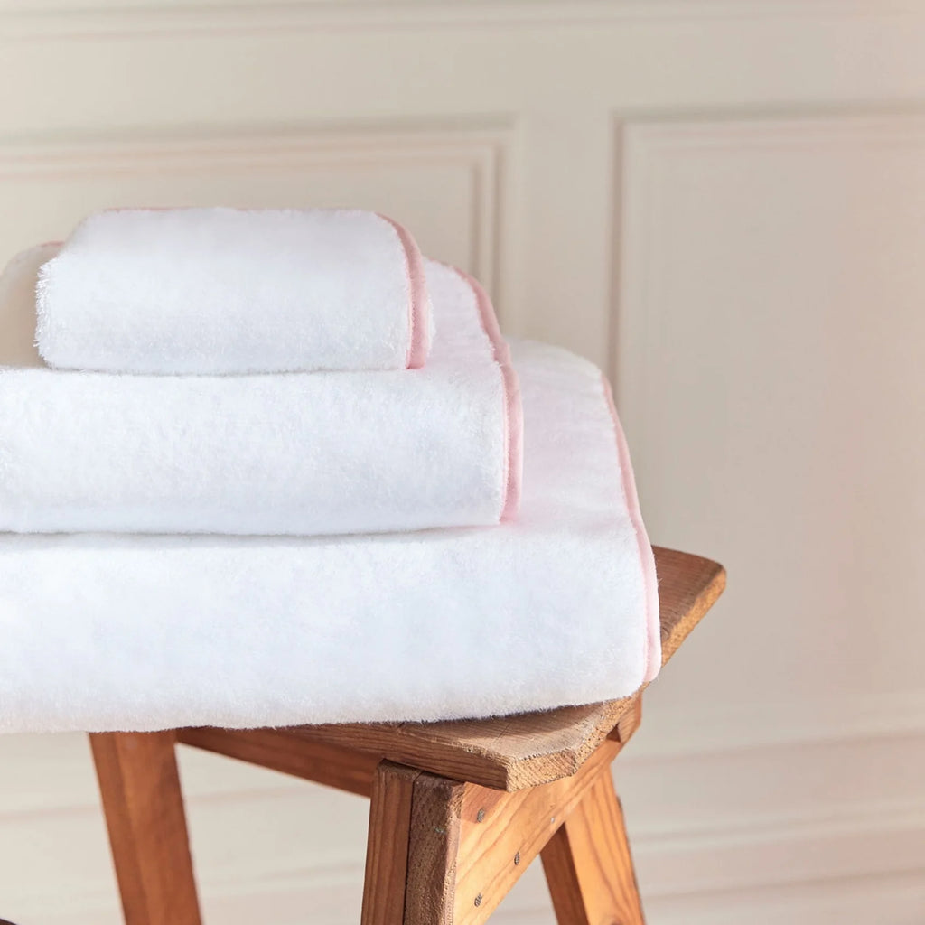 Sus ribetes en tonos variados aportan un toque distintivo y lleno de personalidad al baño. Gracias a sus largos bucles de rizo y a las fibras de alta calidad, ofrece una excelente capacidad de absorción y una suavidad excepcional.