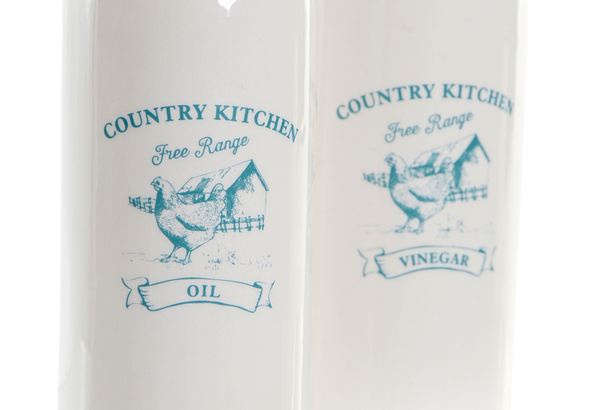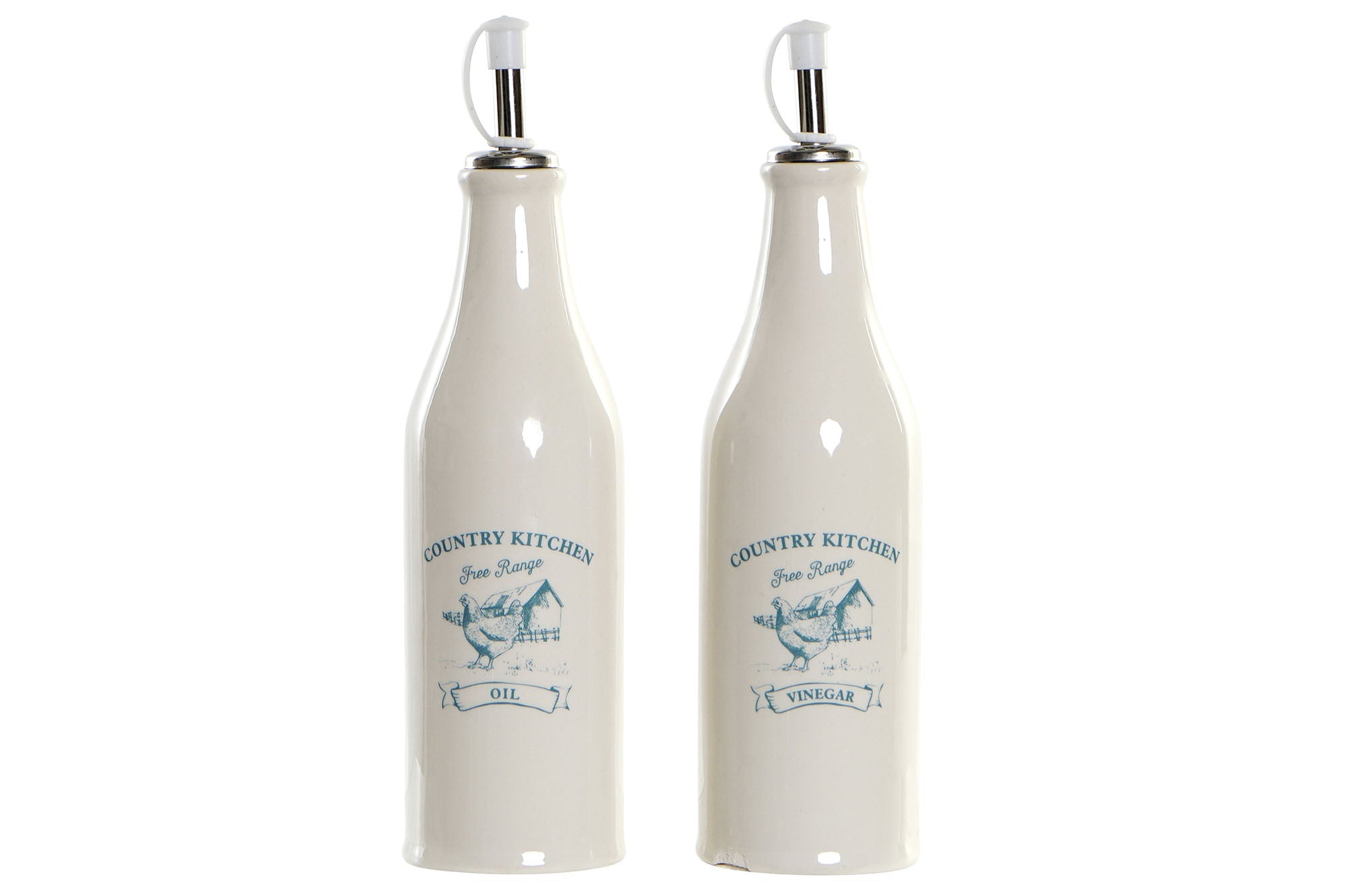 Magnífico set de aceitera y vinagrera fabricado en dolomite y acero inoxidable con colores blanco y turquesa.