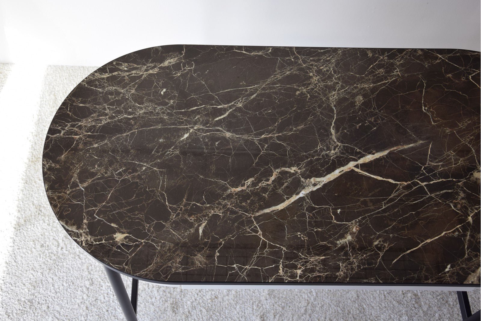 Escritorio fabricado en tablero DM lacado en tono gris arena mate, que combina a la perfección con los matices marrones y beige del material cerámico empleado para el sobre. Dispone de un cajón funcional y una estructura metálica en color negro, aportando estabilidad y un aire contemporáneo ideal para espacios de trabajo o zonas de estudio.