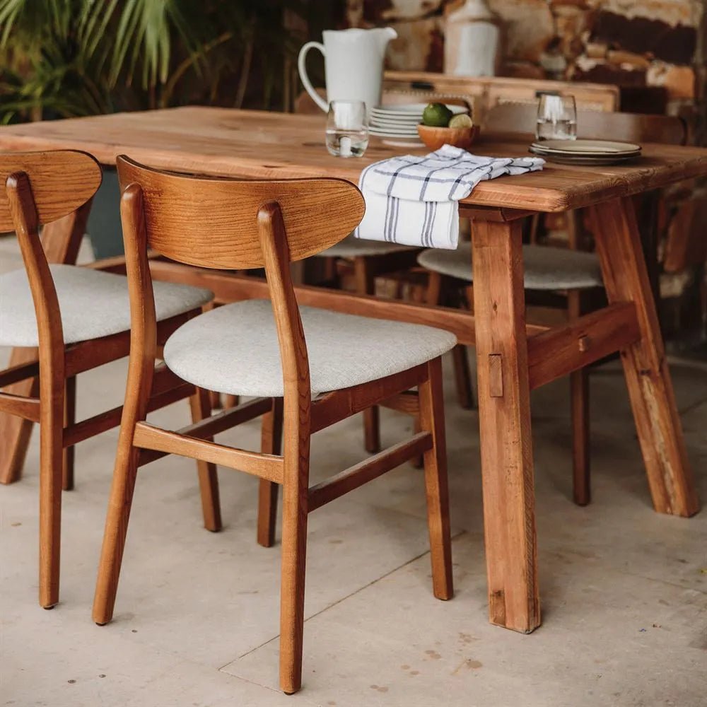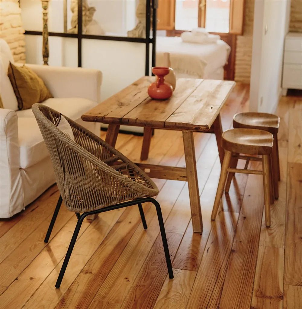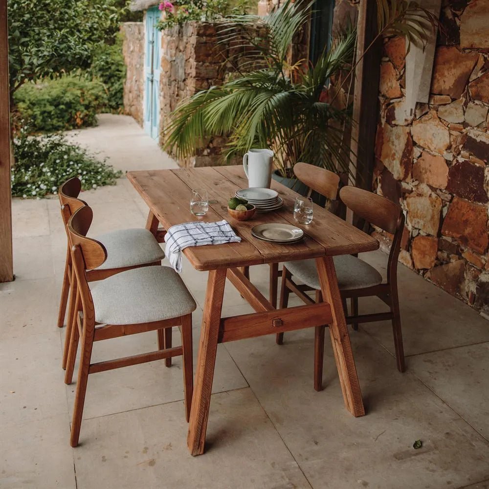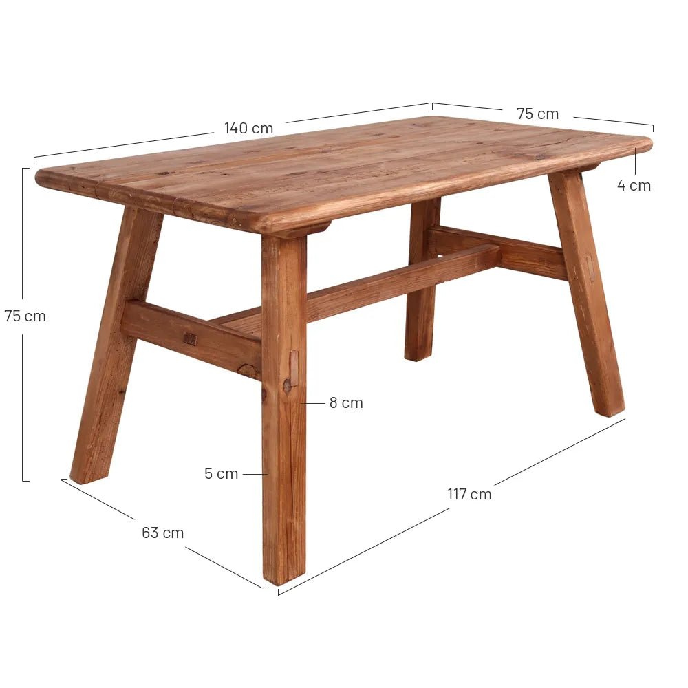 Mesa de estilo rústico - vintage fabricada en madera de pino reciclado color natural.