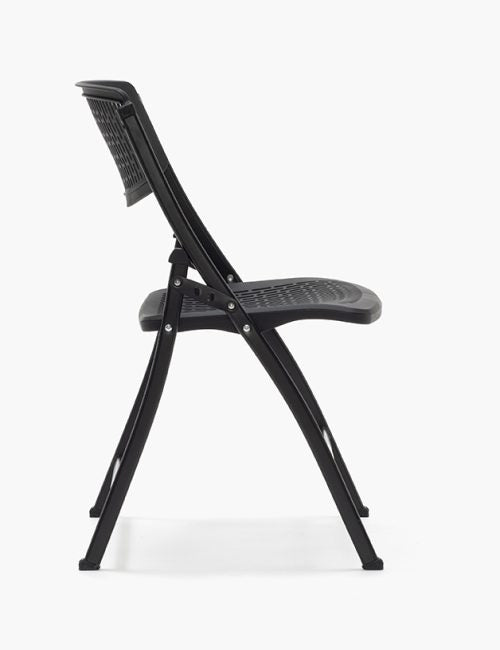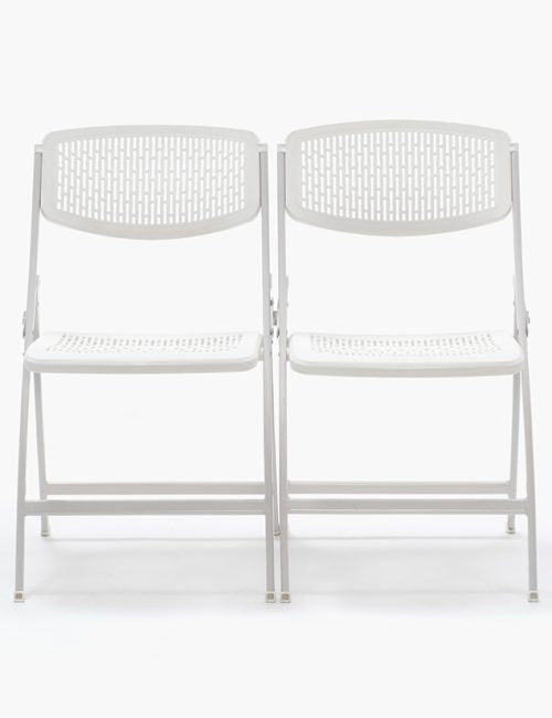 Fabricadas con una estructura de acero oval pintado en epoxi negro o blanco, destacan por su solidez y durabilidad. El asiento y respaldo de polipropileno inyectado presentan una superficie perforada que favorece la transpiración y distribuye el peso del usuario de forma uniforme. Incorporan un sistema de unión lateral que permite conectar varias sillas fácilmente, ofreciendo una disposición estable y práctica en entornos profesionales.
