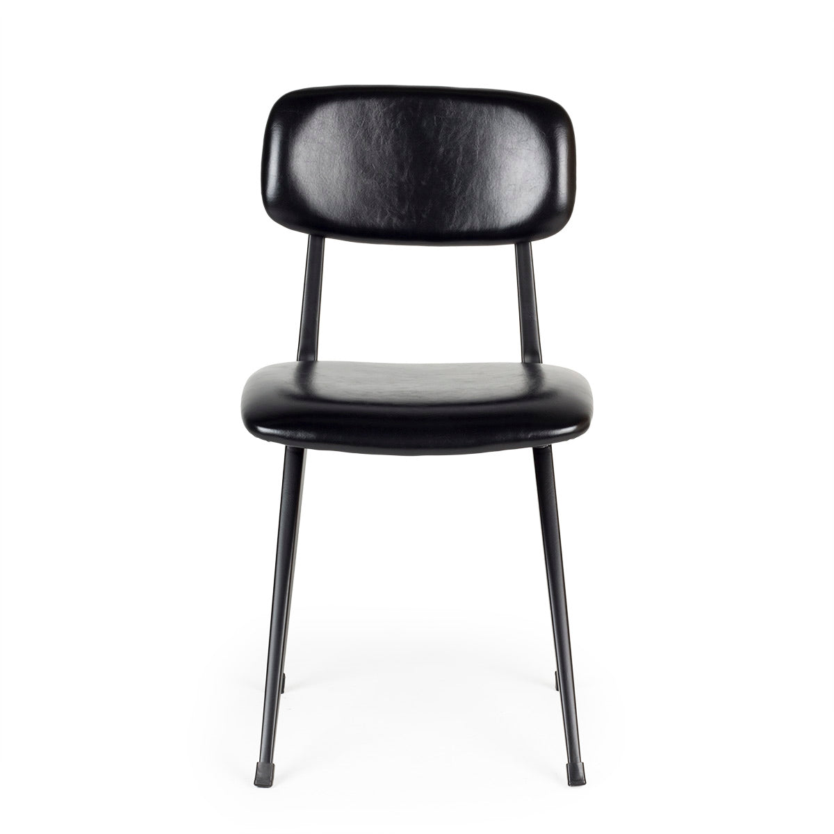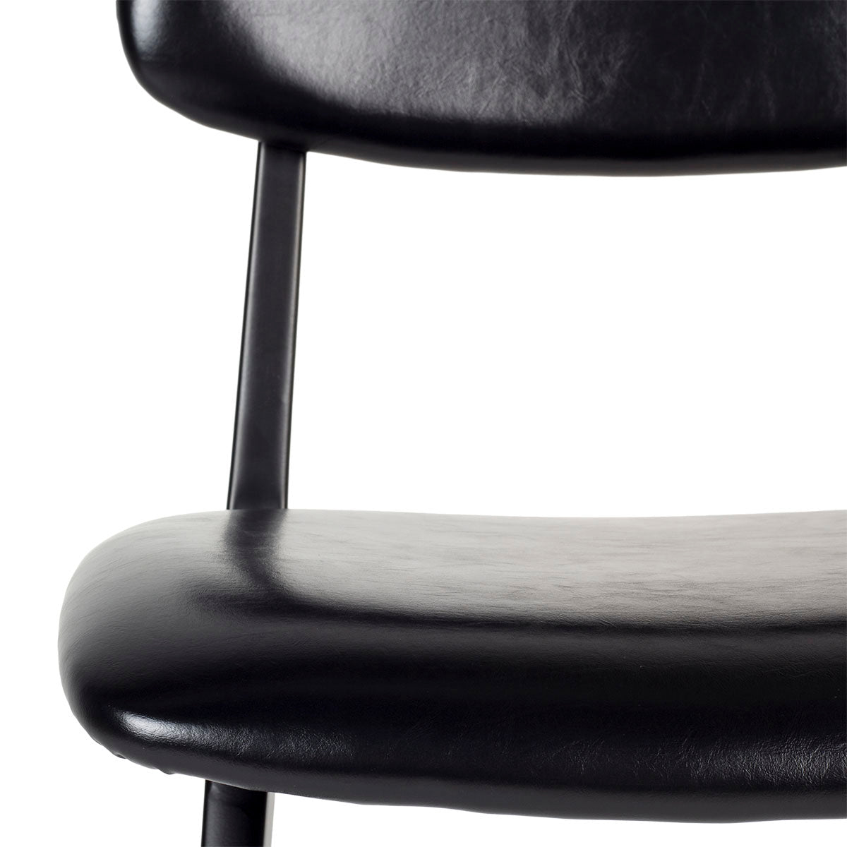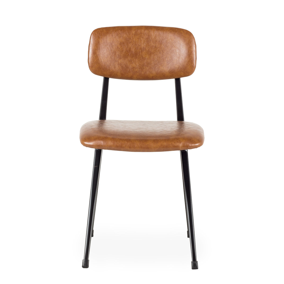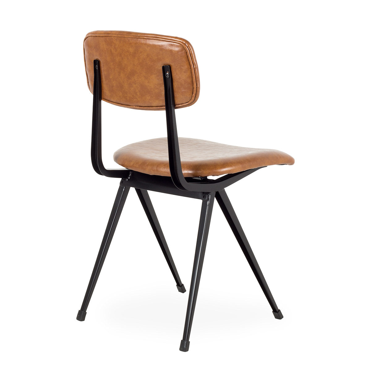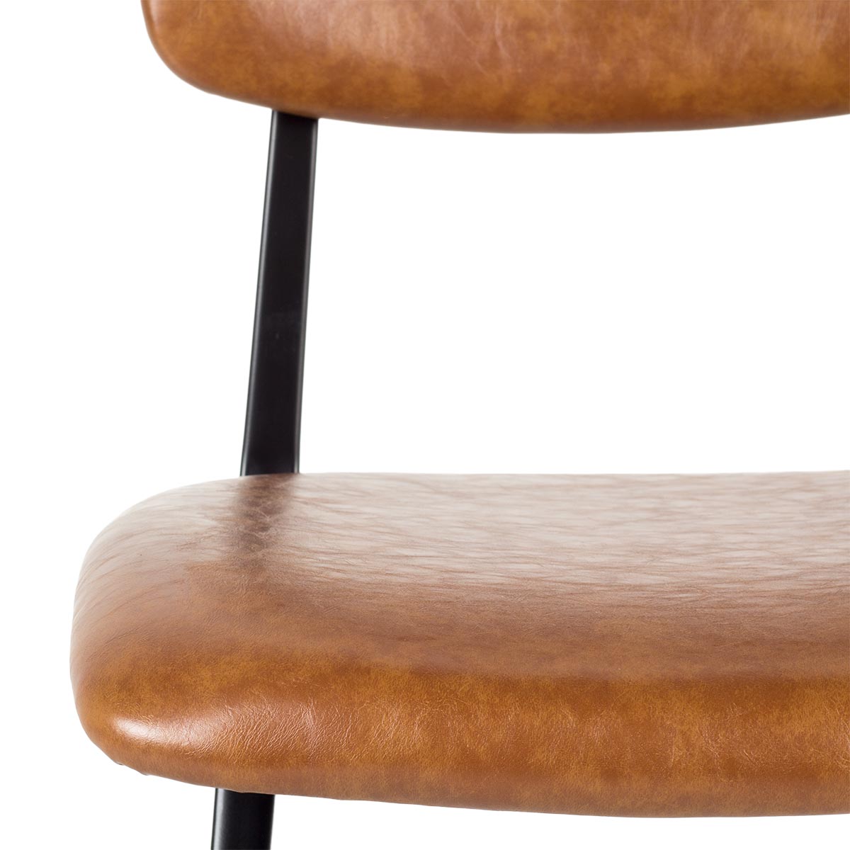 Esta silla presenta una estructura metálica negra que aporta estabilidad, ligereza y un estilo contemporáneo. Su asiento tapizado en polipiel en color marrón y negro ofrece una textura suave y fácil de mantener.