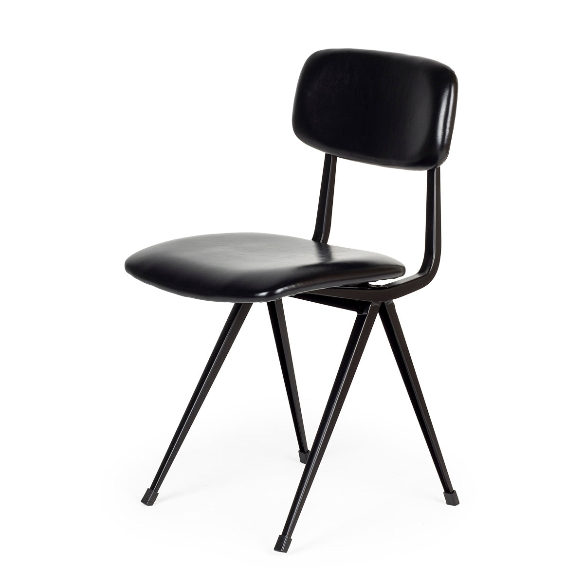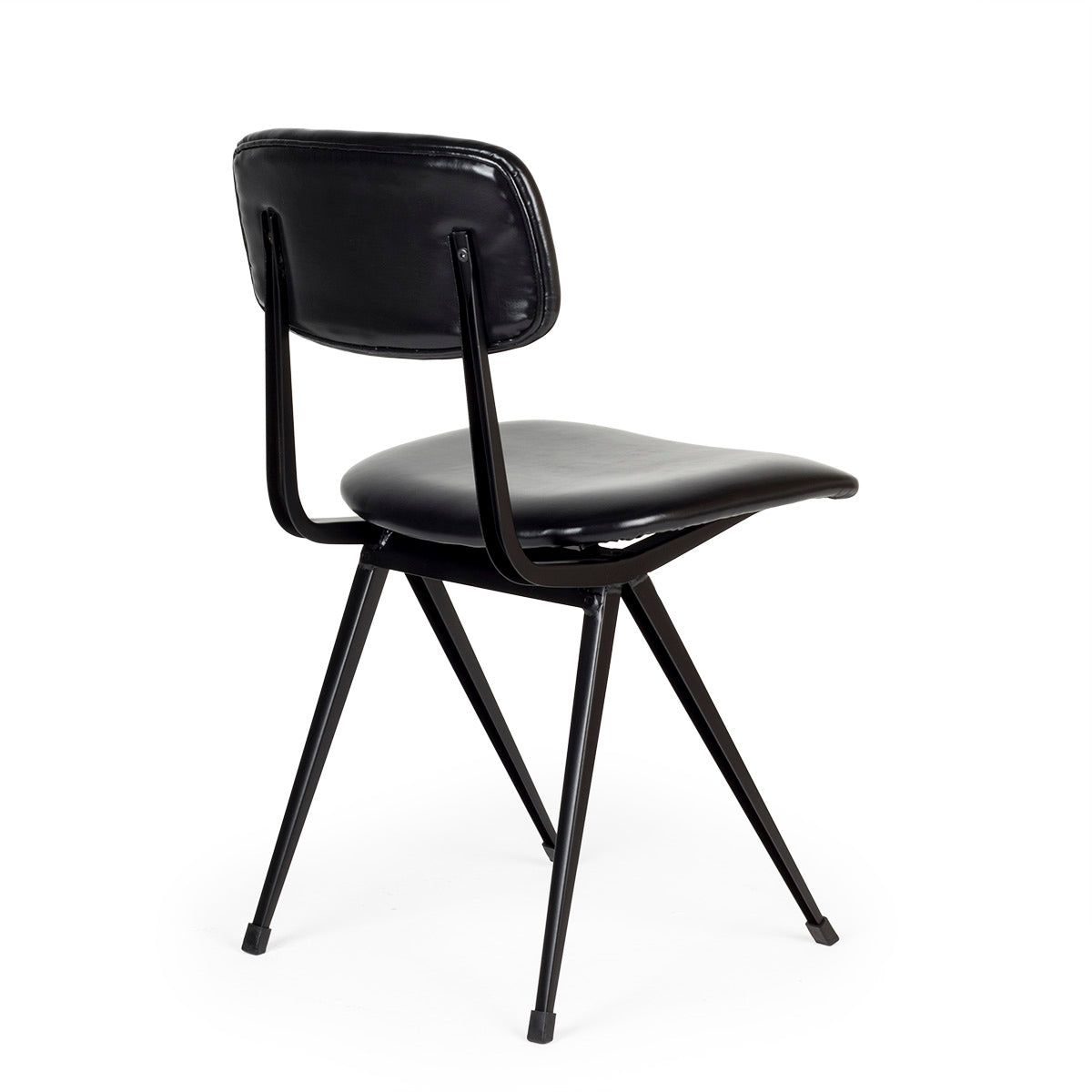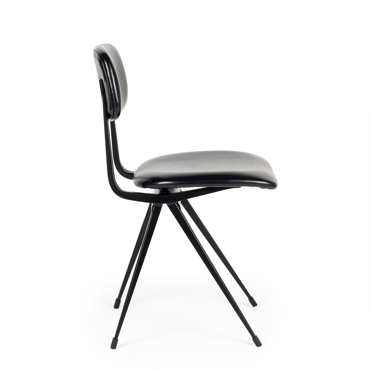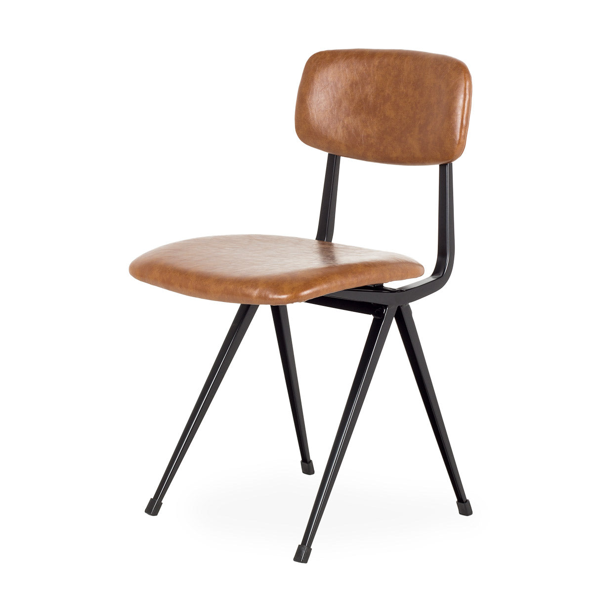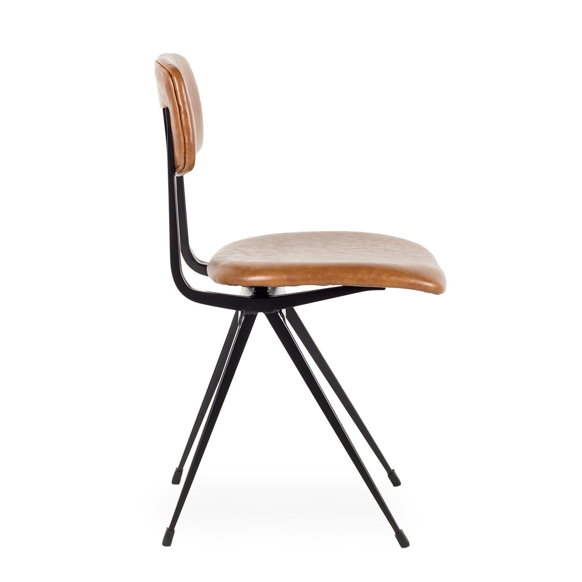 Esta silla presenta una estructura metálica negra que aporta estabilidad, ligereza y un estilo contemporáneo. Su asiento tapizado en polipiel en color marrón y negro ofrece una textura suave y fácil de mantener.