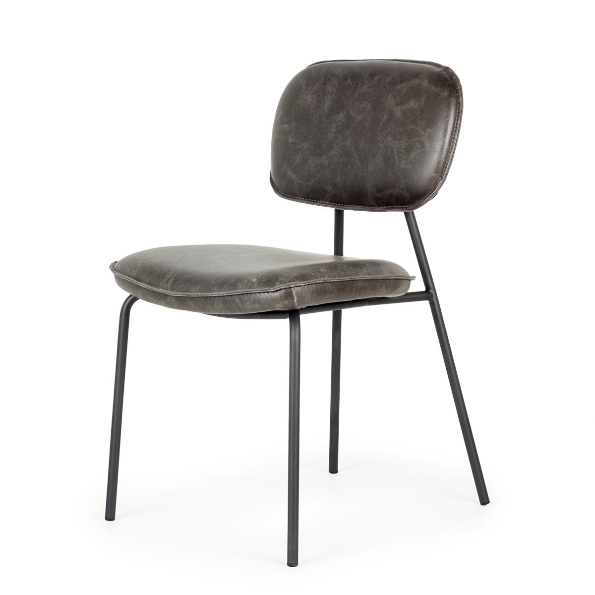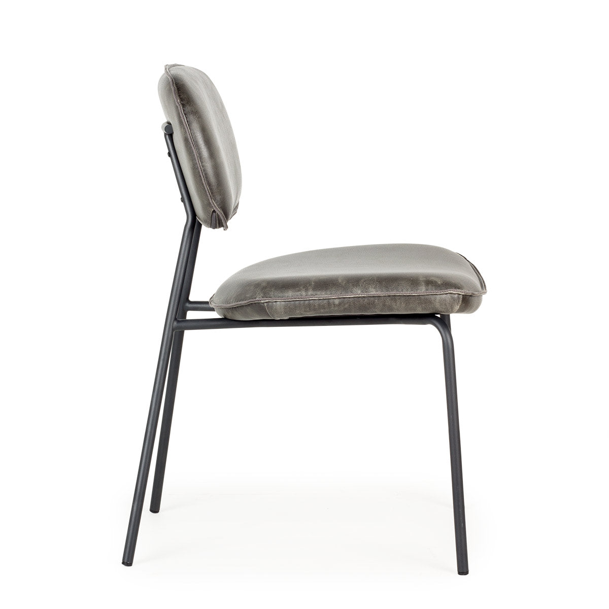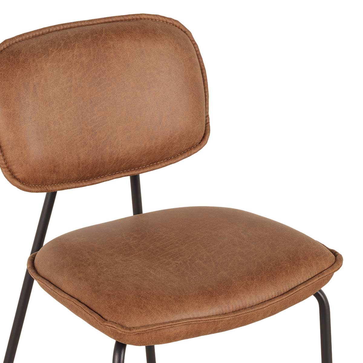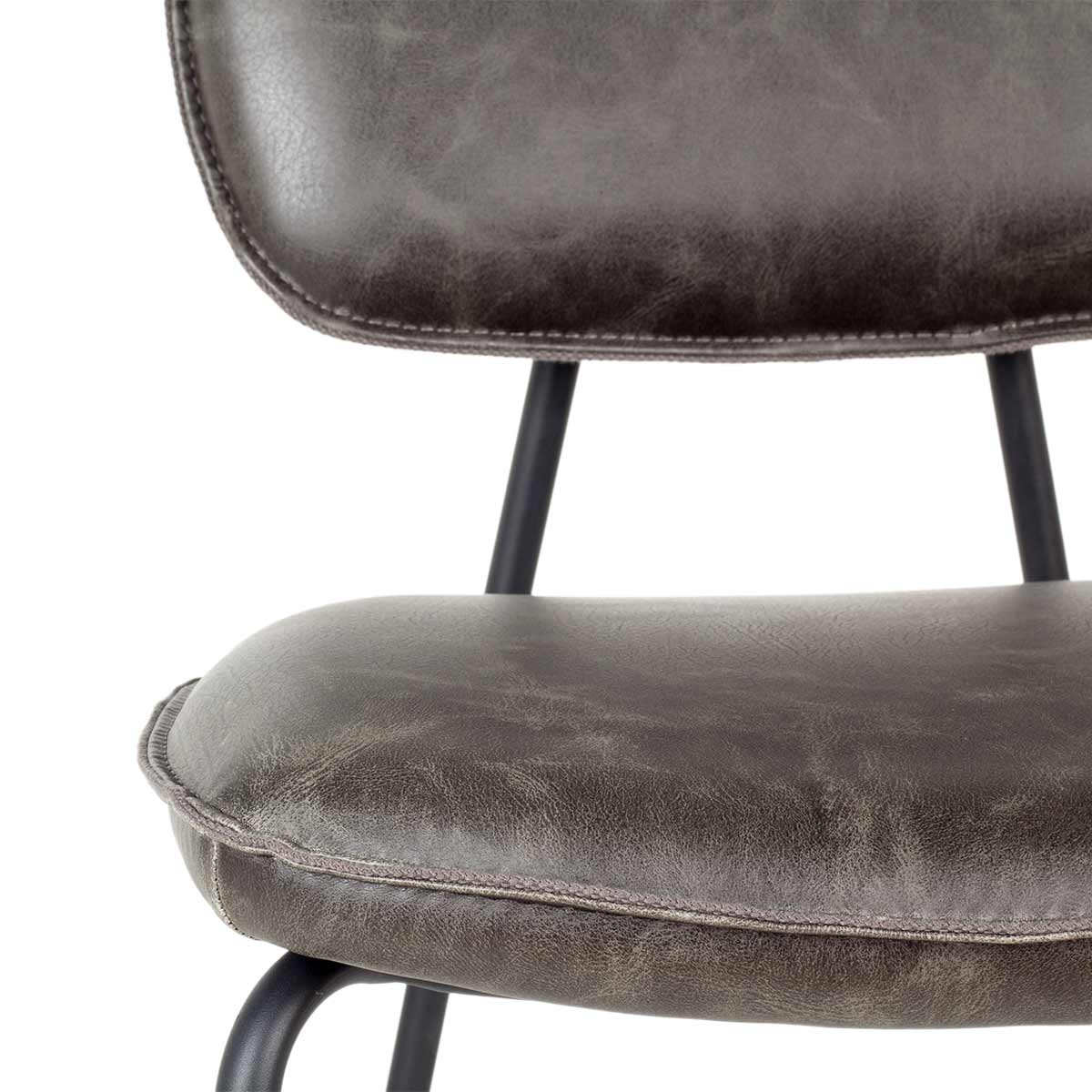 Esta silla presenta una estructura tubular metálica negra que aporta estabilidad, ligereza y un estilo contemporáneo. Su asiento tapizado en polipiel en color gris y marrón ofrece una textura suave y fácil de mantener mientras que el remate de cordón añade un detalle distintivo que realza su acabado elegante.
