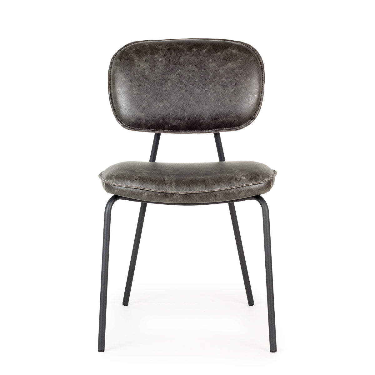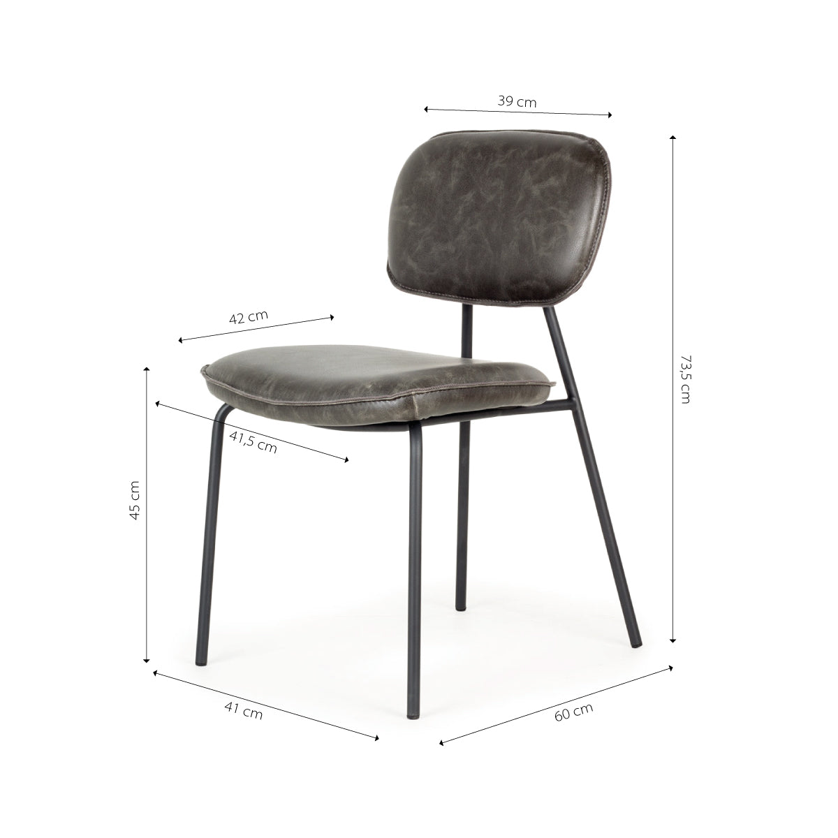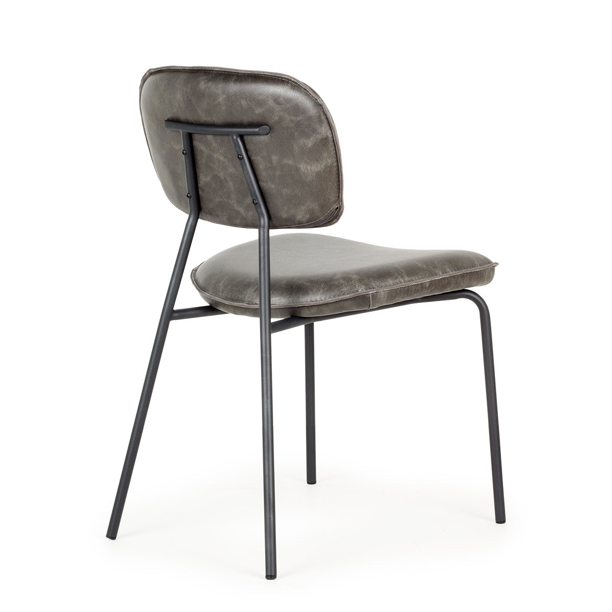 Esta silla presenta una estructura tubular metálica negra que aporta estabilidad, ligereza y un estilo contemporáneo. Su asiento tapizado en polipiel en color gris y marrón ofrece una textura suave y fácil de mantener mientras que el remate de cordón añade un detalle distintivo que realza su acabado elegante.