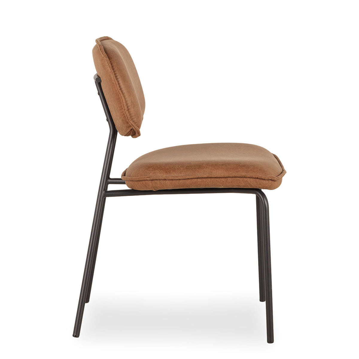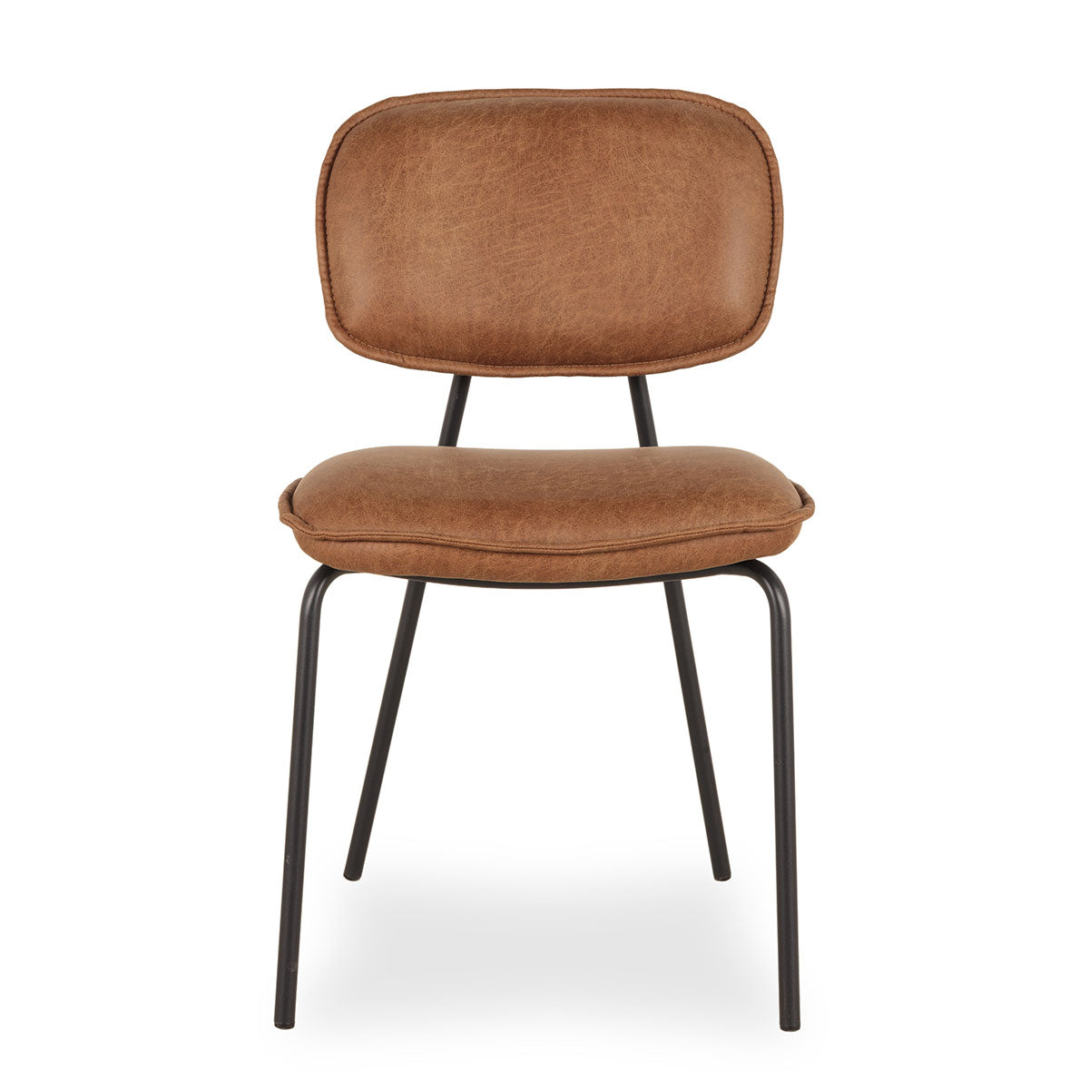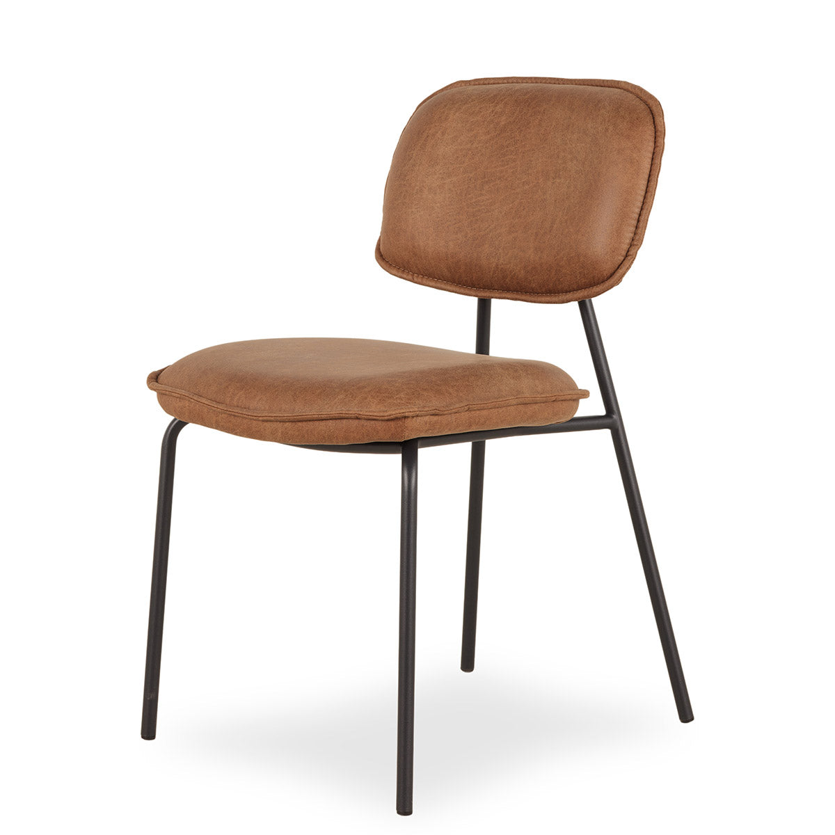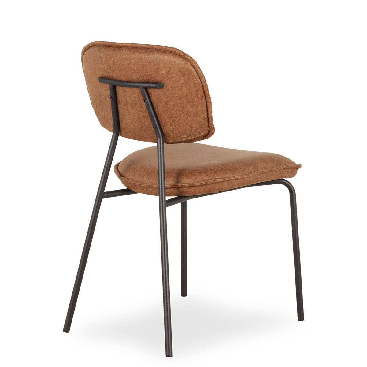 Esta silla presenta una estructura tubular metálica negra que aporta estabilidad, ligereza y un estilo contemporáneo. Su asiento tapizado en polipiel en color gris y marrón ofrece una textura suave y fácil de mantener mientras que el remate de cordón añade un detalle distintivo que realza su acabado elegante.