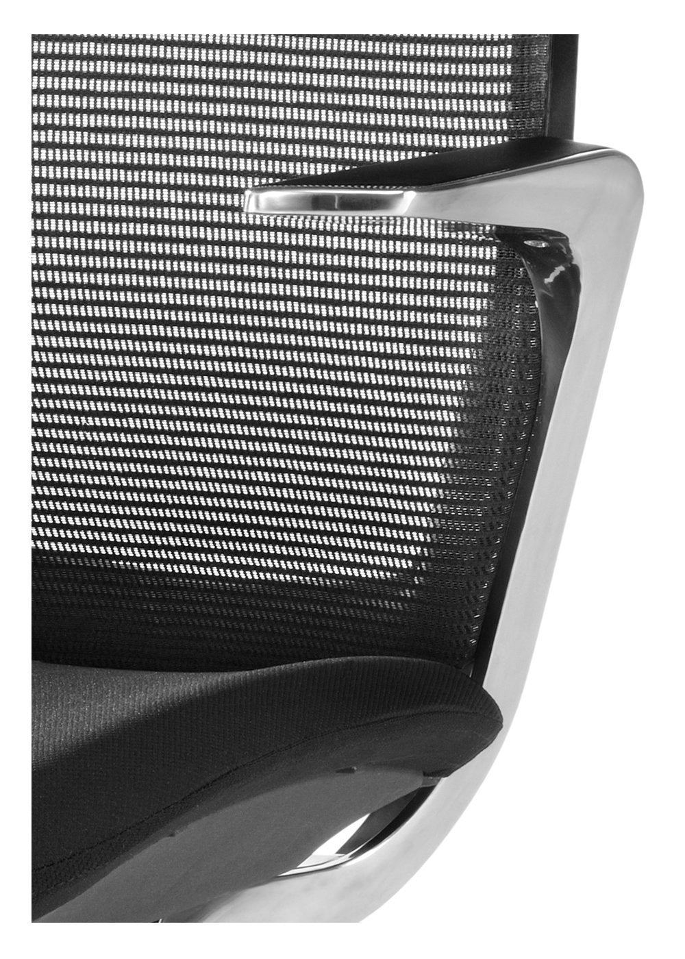 - Brazos estructurales en acero cromado y poliamida negra.