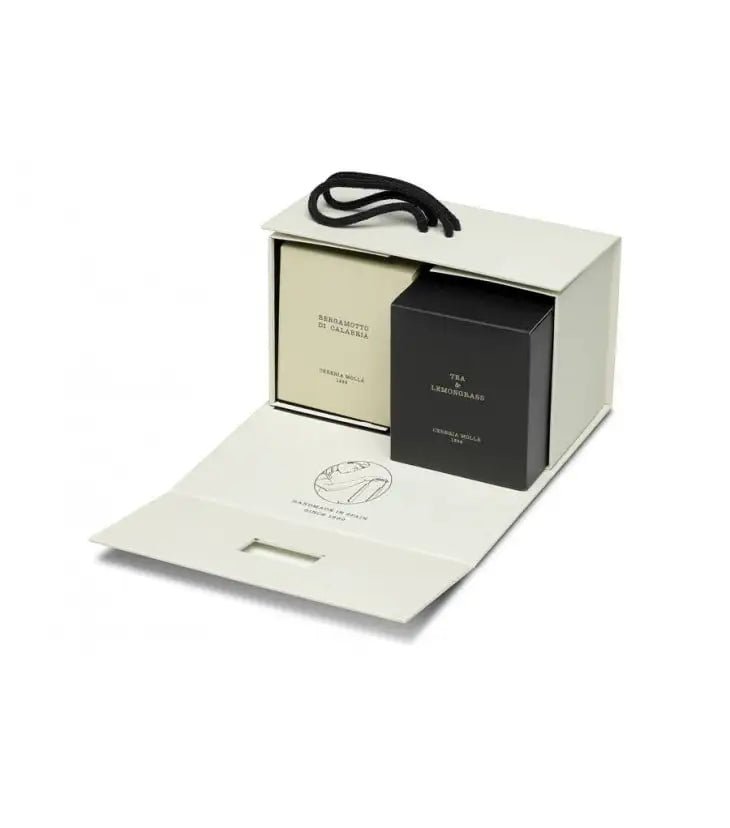 Caja regalo de lujo plegable con set de 2 velas premium, (aromas a elegir).