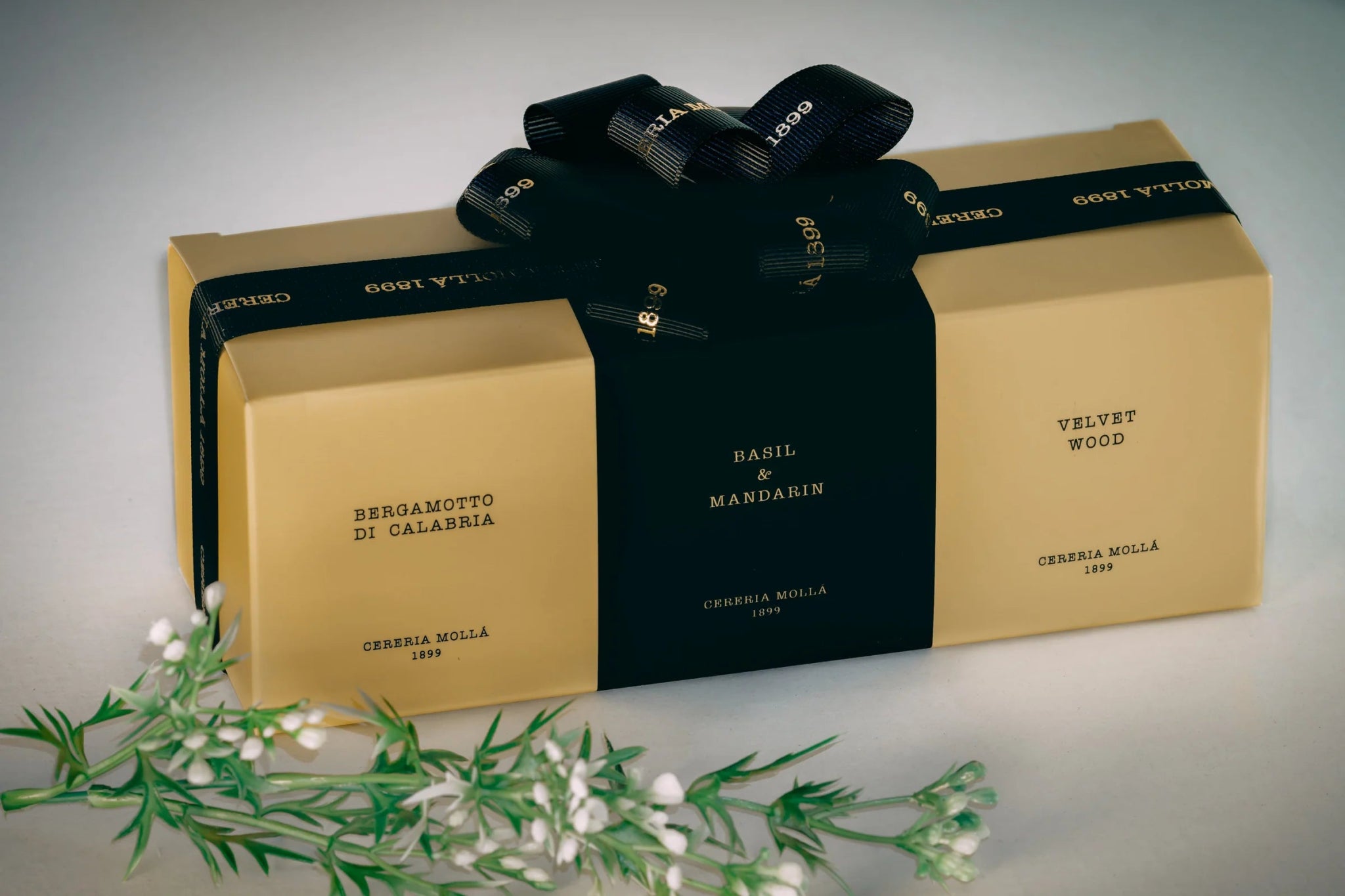 Set de regalo 3 mini velas aromáticas con tres aromas diferentes, acabado con un bonito lazo de regalo hecho a mano.