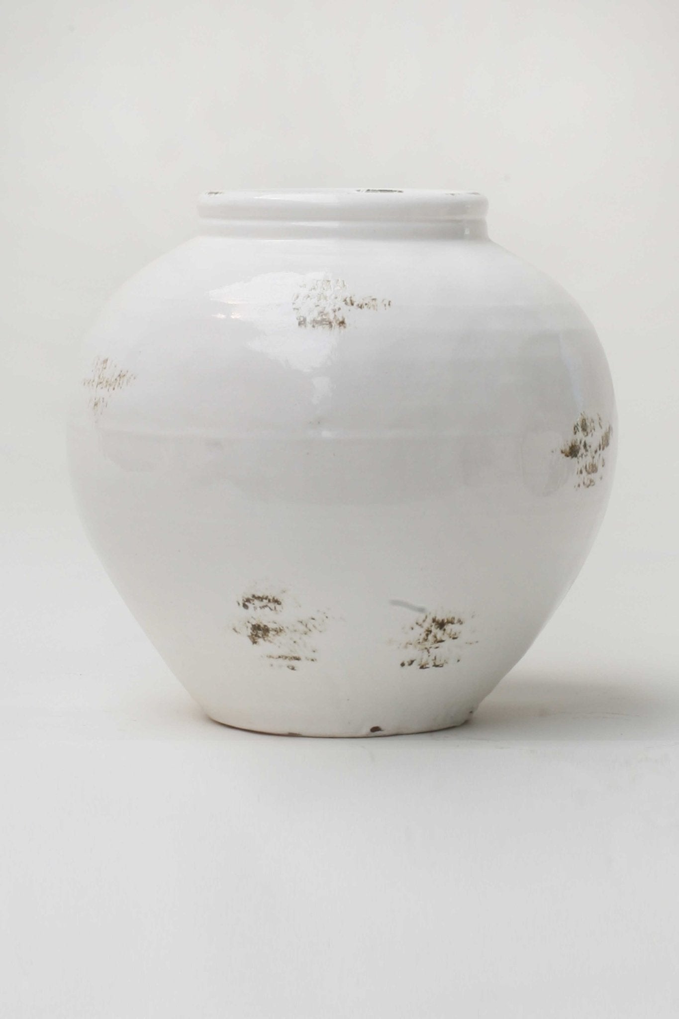 Preciosa tinaja fabricada en cerámica en color blanco.