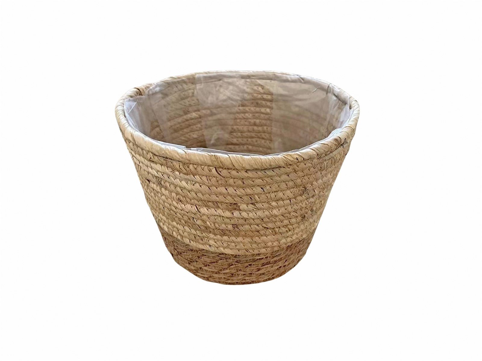 Precioso macetero fabricado en fibras natural en color natural.