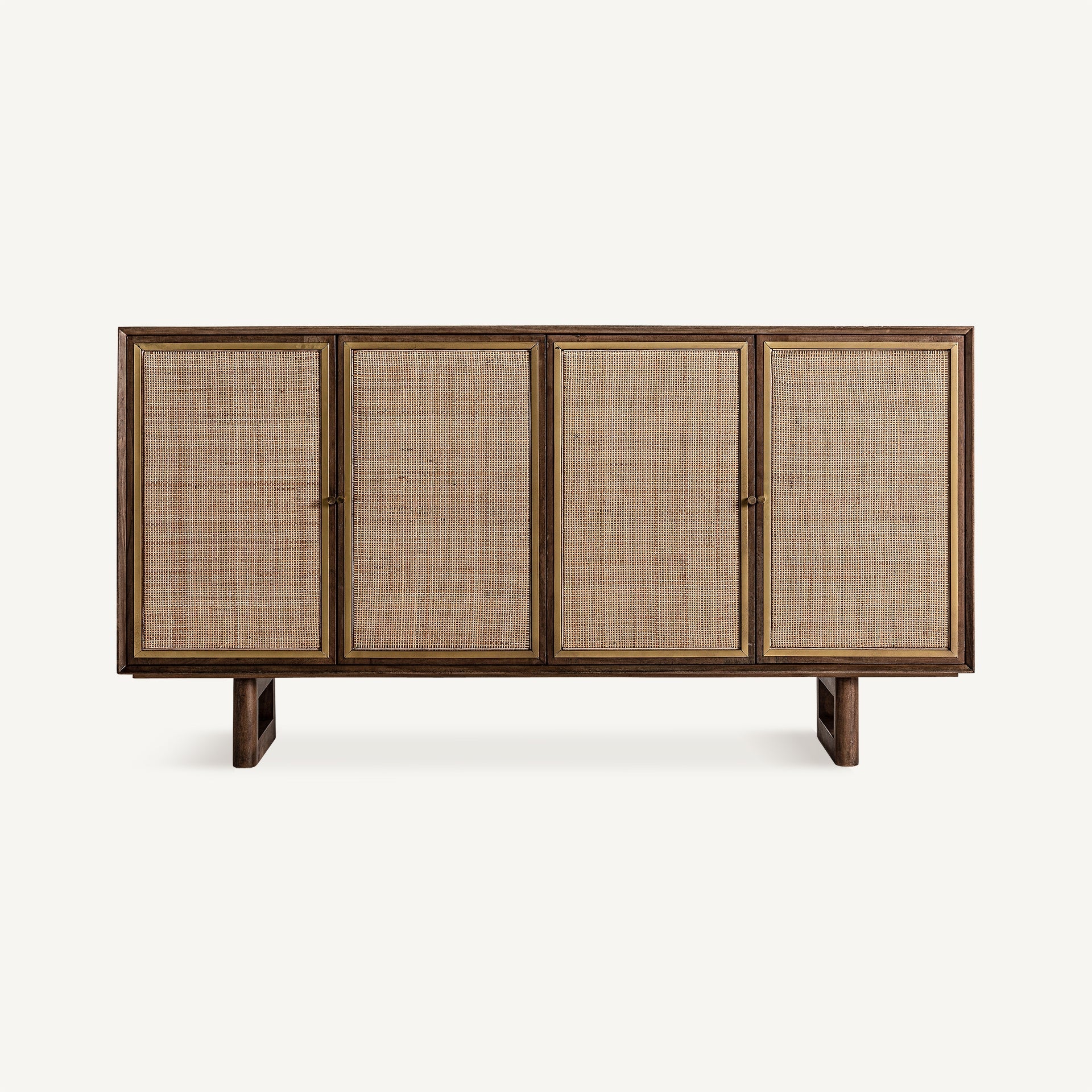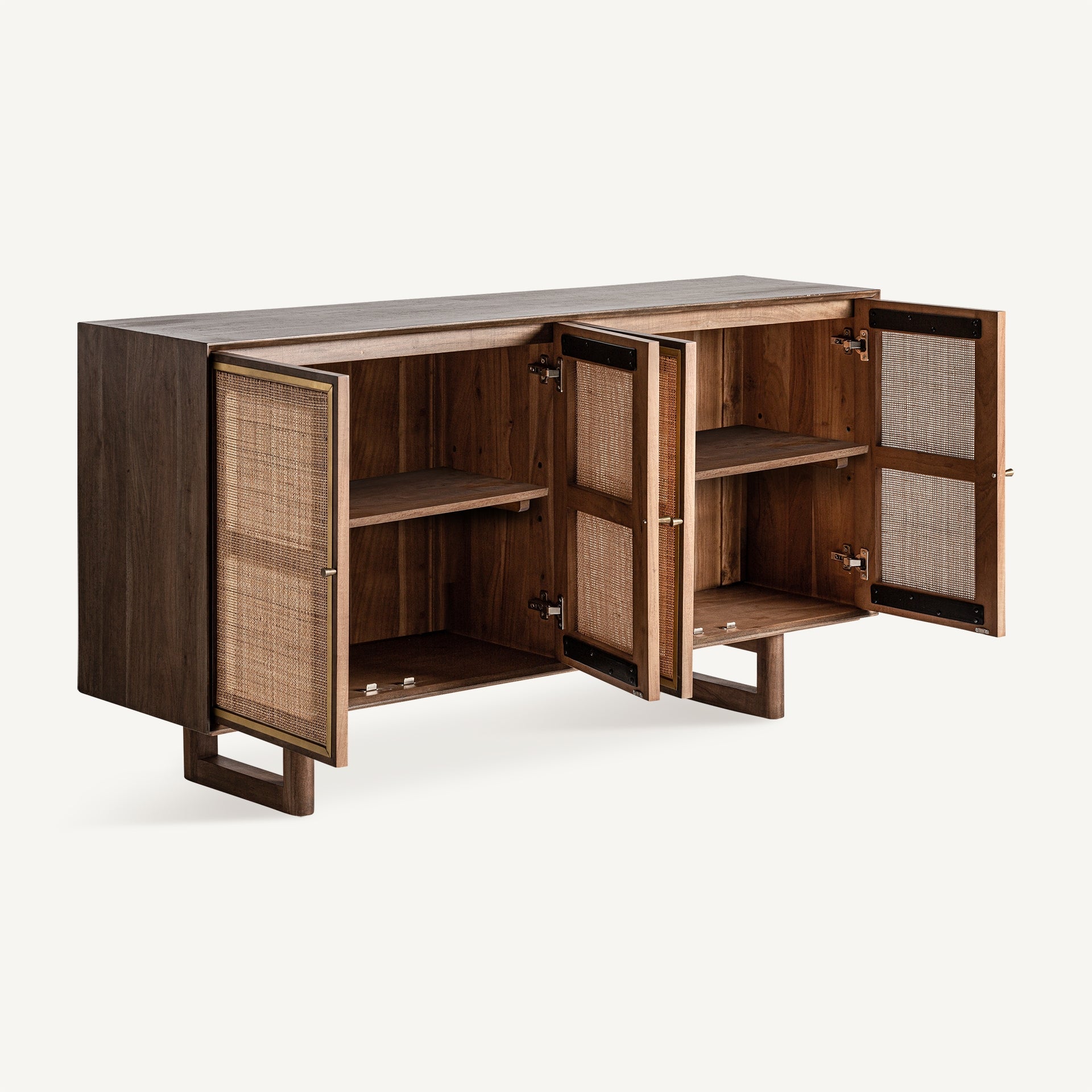 Precioso aparador fabricado en madera de mango con un acabado natural y complementado con puertas de ratán, este aparador puertas ratán es la perfecta combinación de tradición y tendencia. La textura y diseño del ratán aportan una sensación fresca y orgánica.