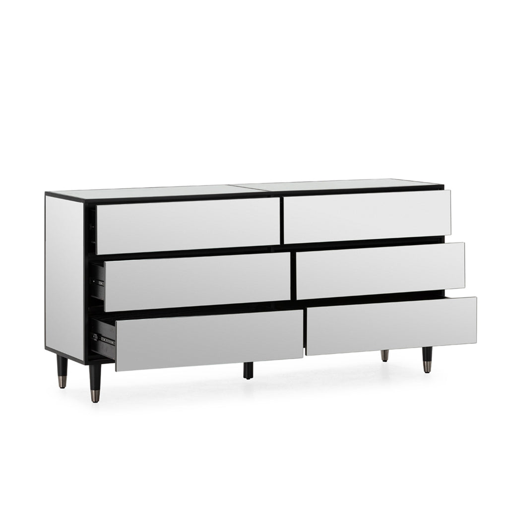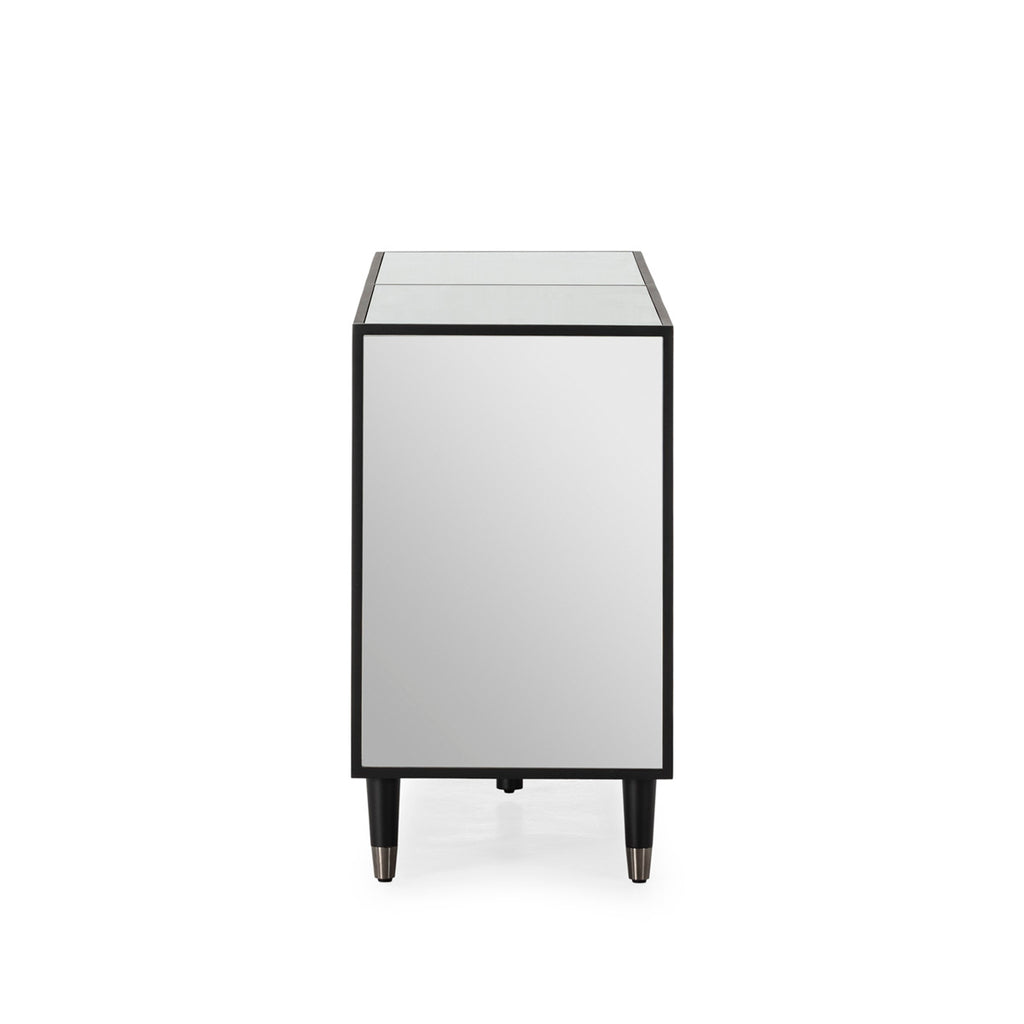 El aparador Core redefine la simplicidad moderna con una propuesta elegante, funcional y visualmente impactante. Diseñado para quienes buscan una pieza versátil y con carácter, combina la solidez del MDF de alta calidad con paneles en espejo que aportan luminosidad, amplitud y un toque sofisticado al ambiente. Su acabado en negro profundo crea un contraste perfecto con los detalles reflectantes, generando un juego visual que resalta sus líneas limpias y proporciones equilibradas. Gracias a su estética sobria y contemporánea, se integra con naturalidad en interiores modernos, minimalistas o de estilo glam. Además de su presencia, ofrece una gran capacidad de almacenamiento distribuida en compartimentos amplios y bien organizados que permiten guardar vajilla, accesorios decorativos, textiles o documentos sin renunciar al estilo. Las superficies en espejo añaden un brillo sutil que eleva la decoración, mientras que la estructura en MDF garantiza durabilidad y estabilidad en el uso diario.