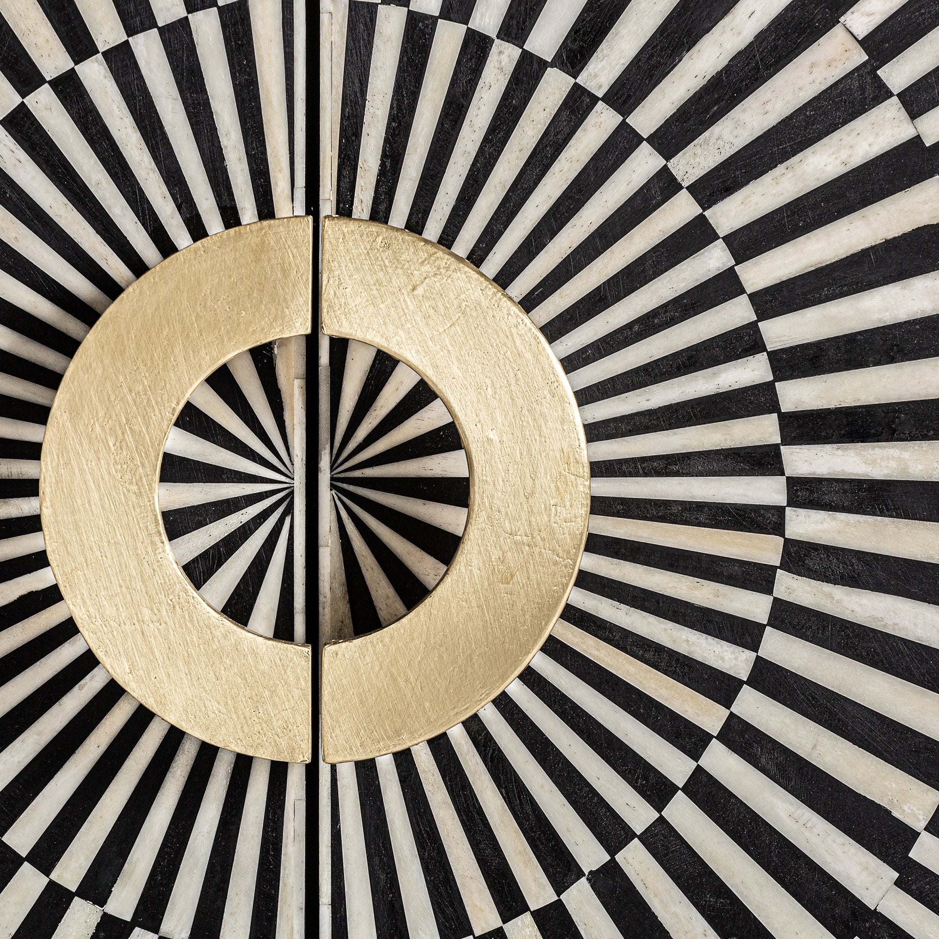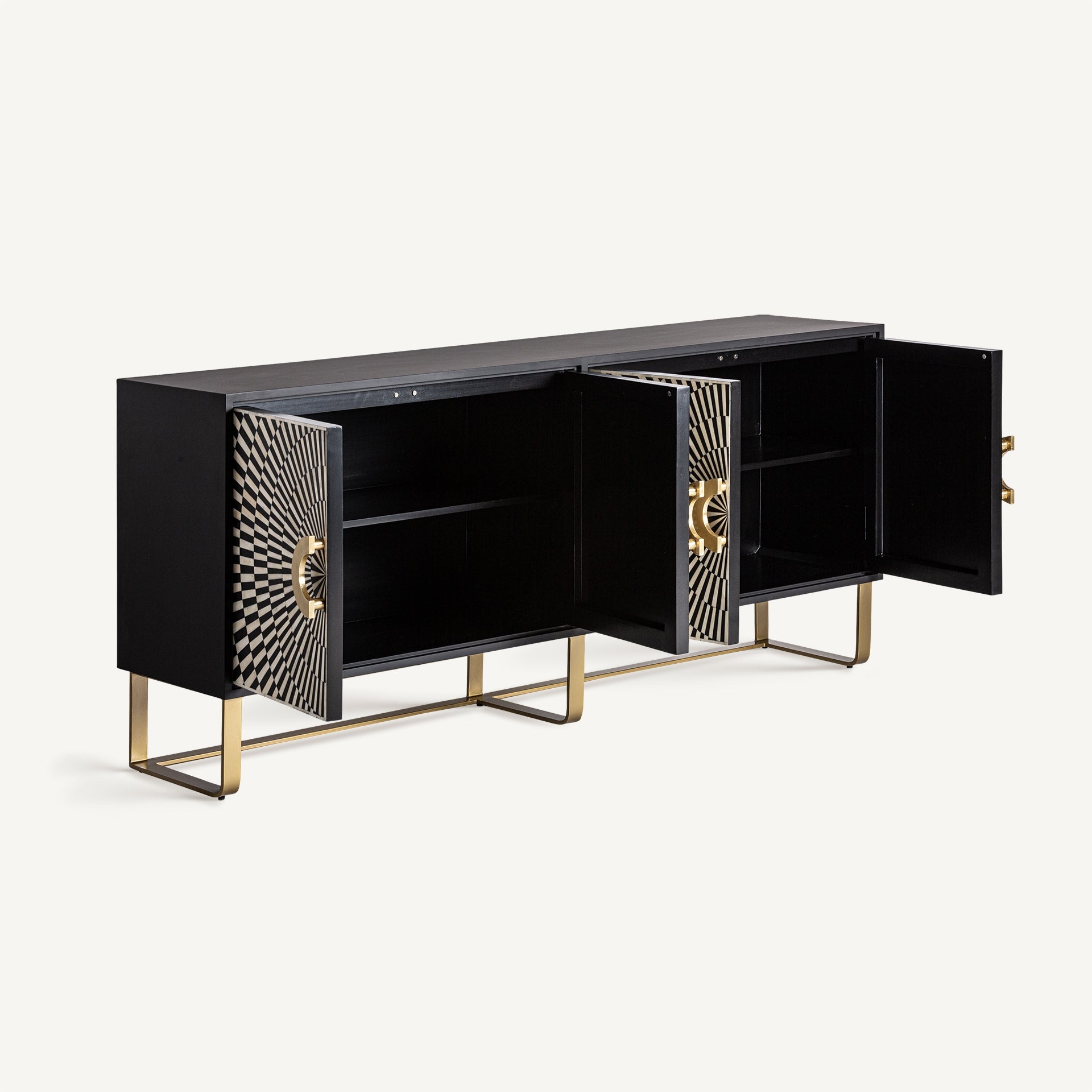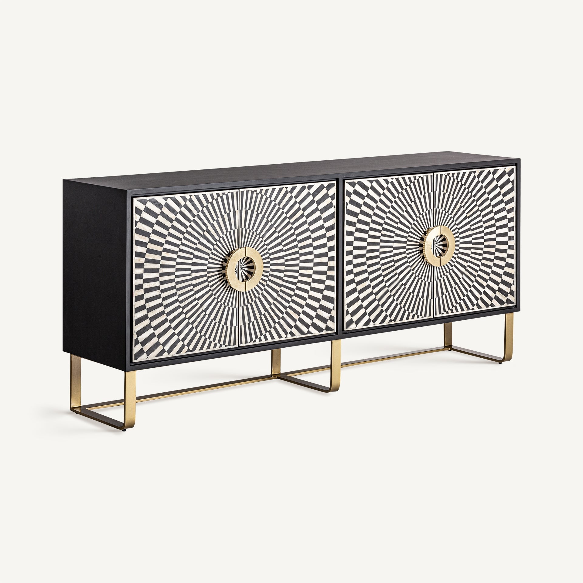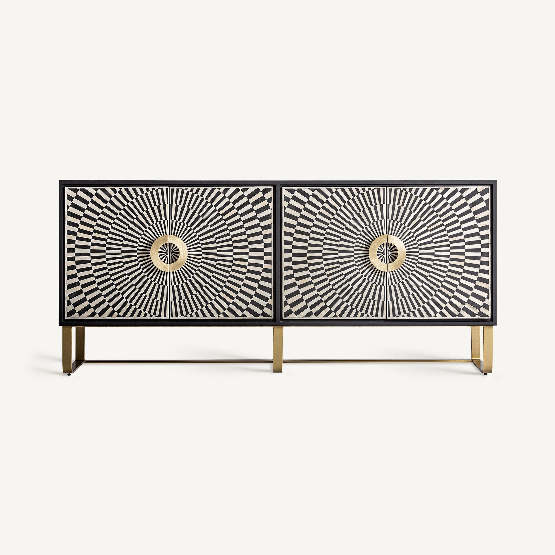 Precioso aparador en color blanco, negro y oro fabricado en madera, hierro y hueso.