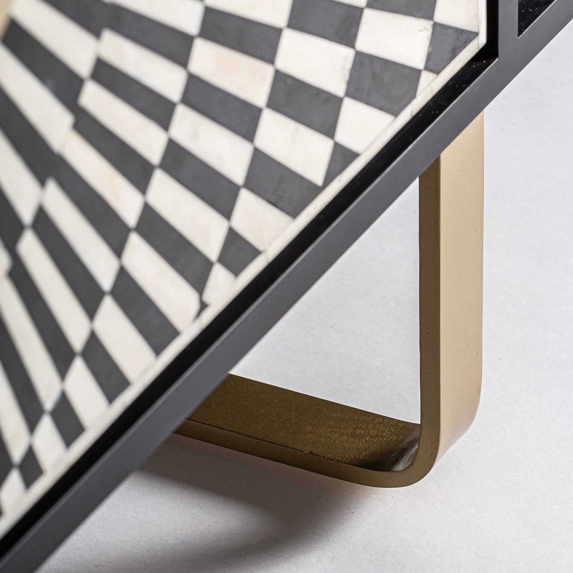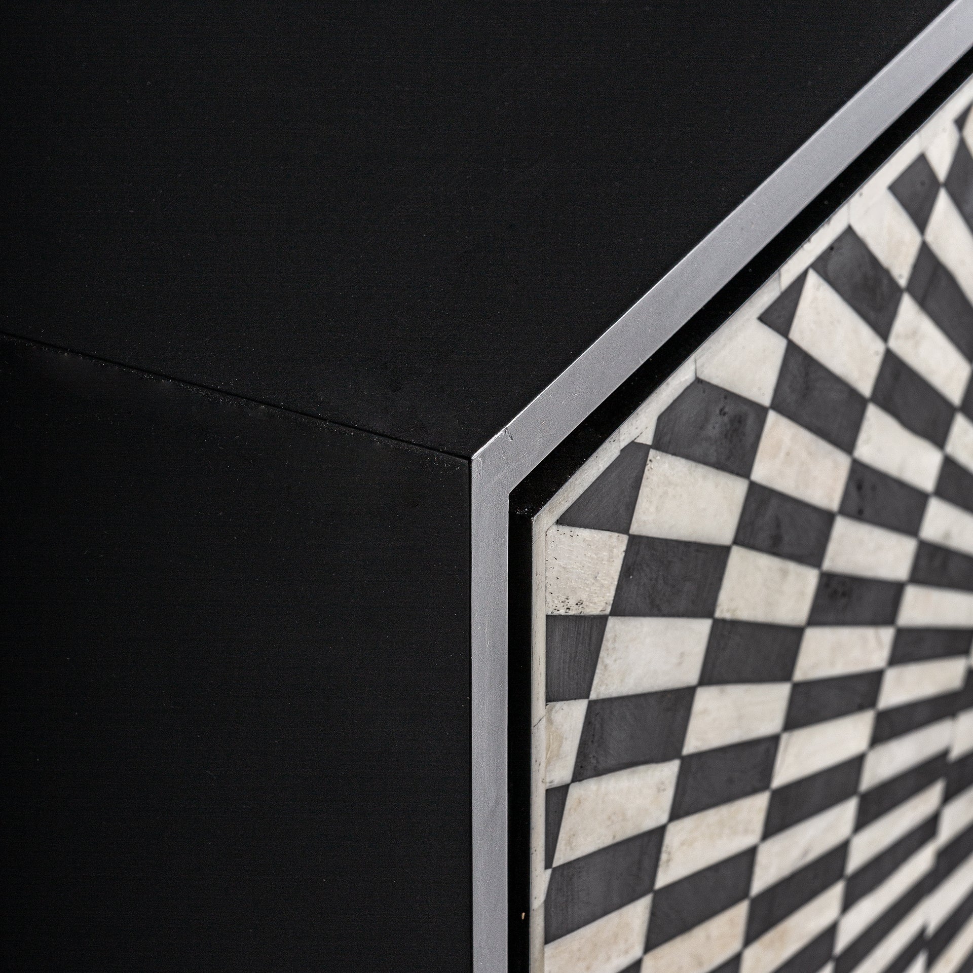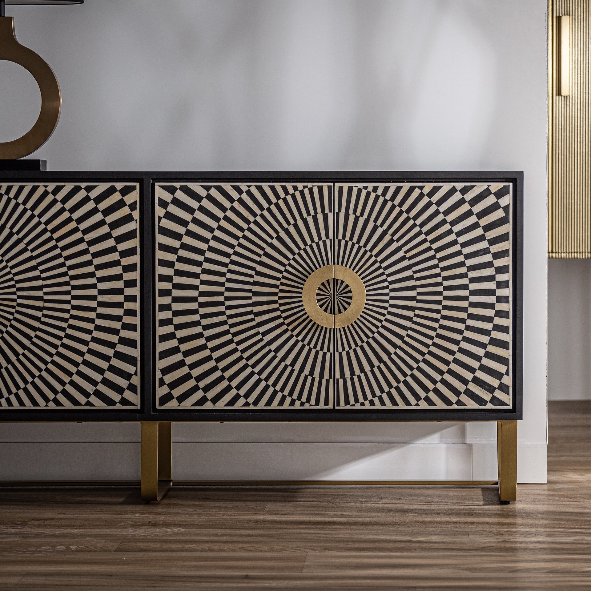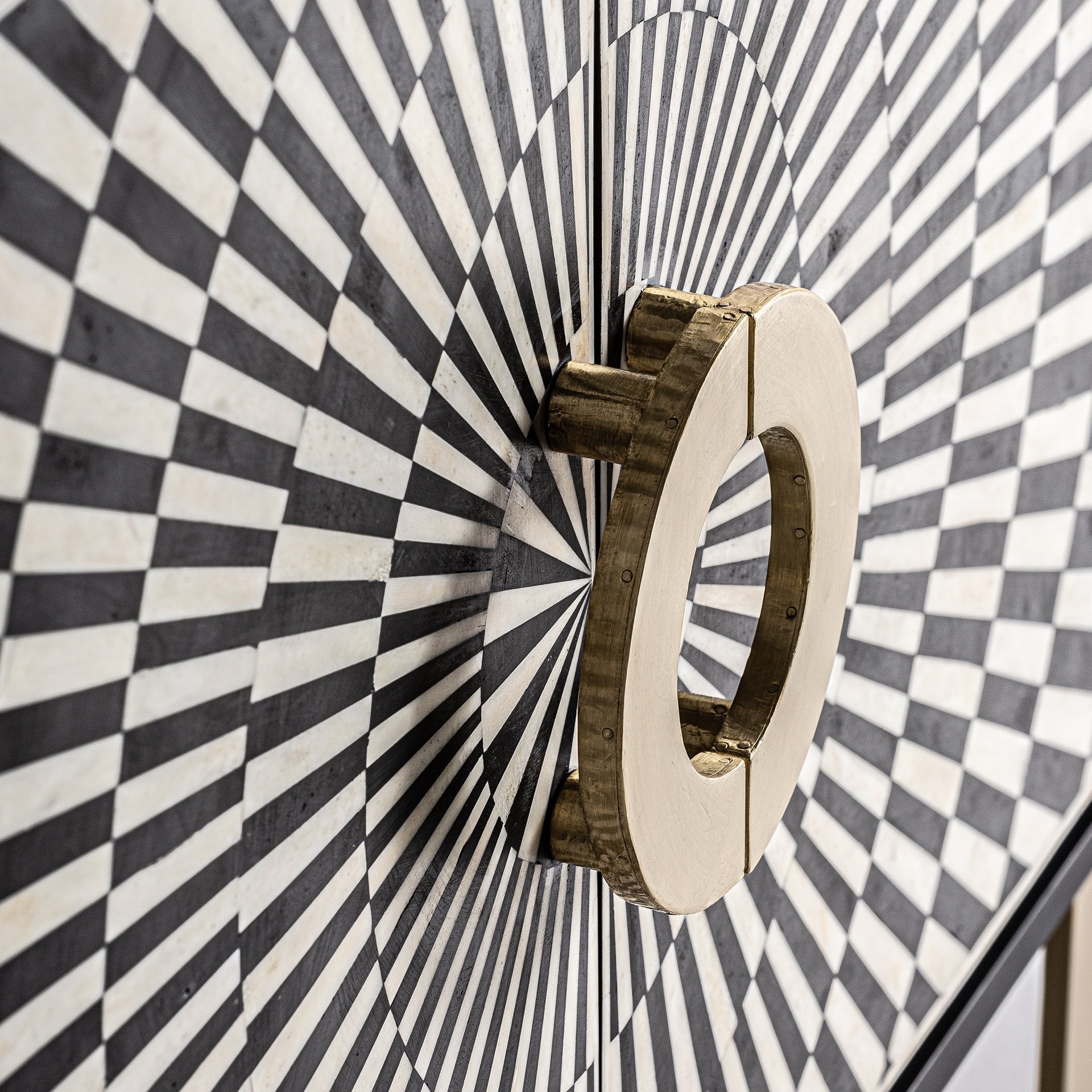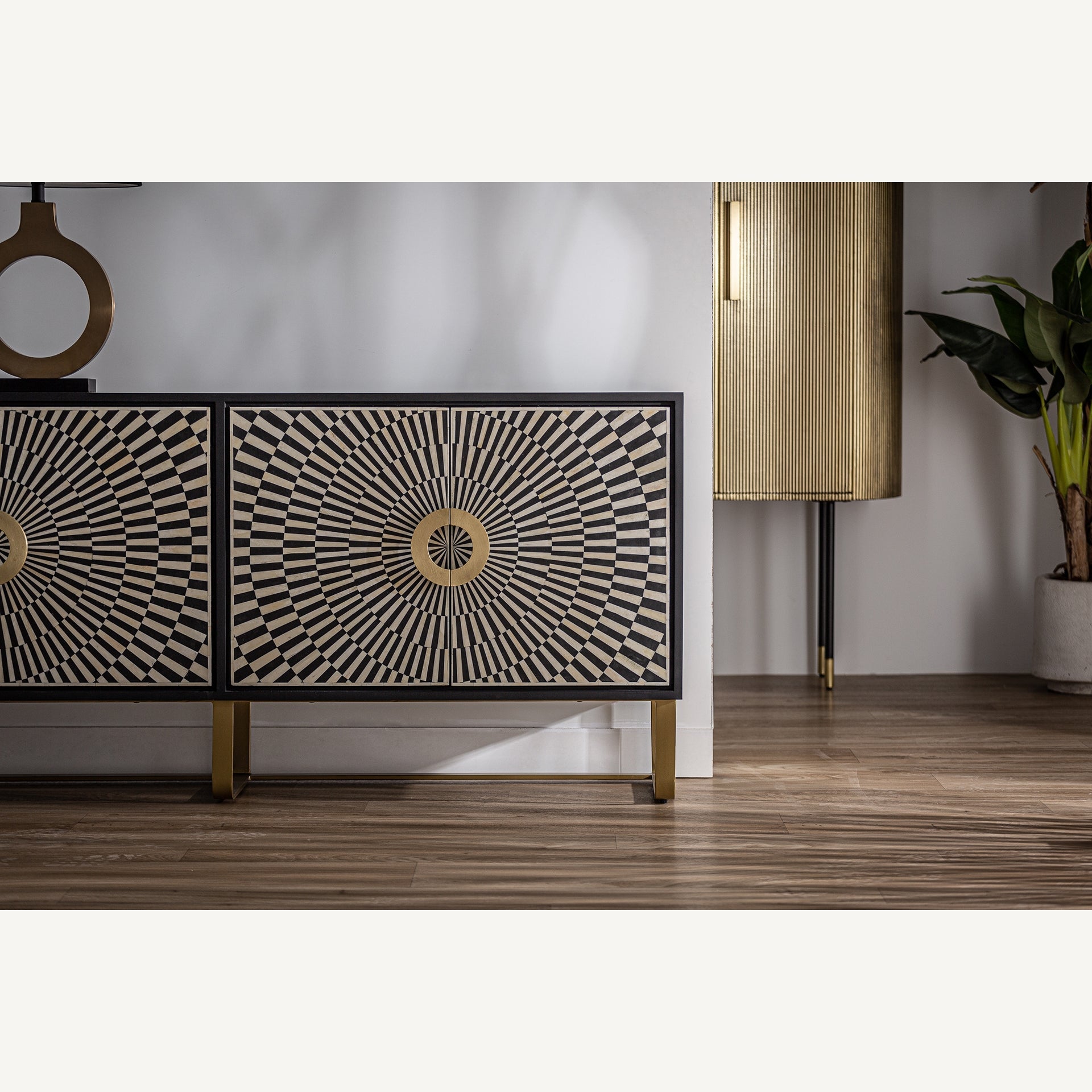 Precioso aparador en color blanco, negro y oro fabricado en madera, hierro y hueso.