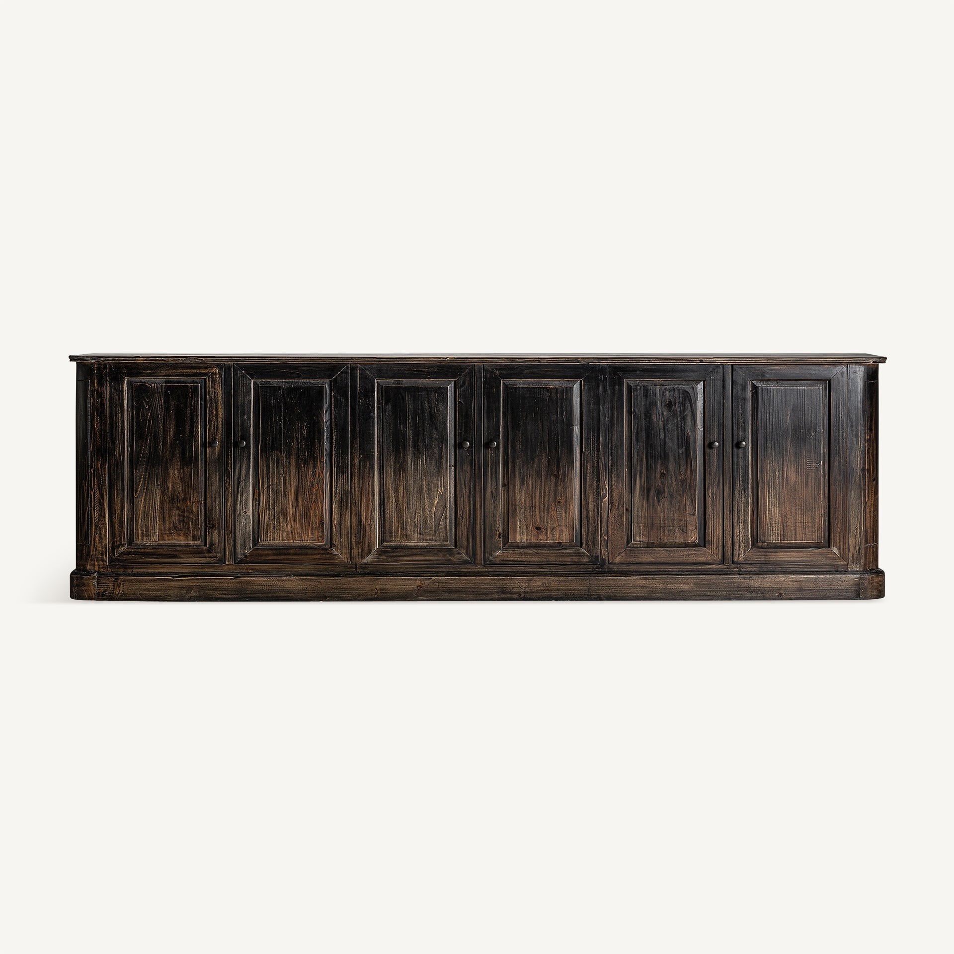 Precioso aparador fabricado en madera de pino reciclado en color marrón, de estilo colonial.