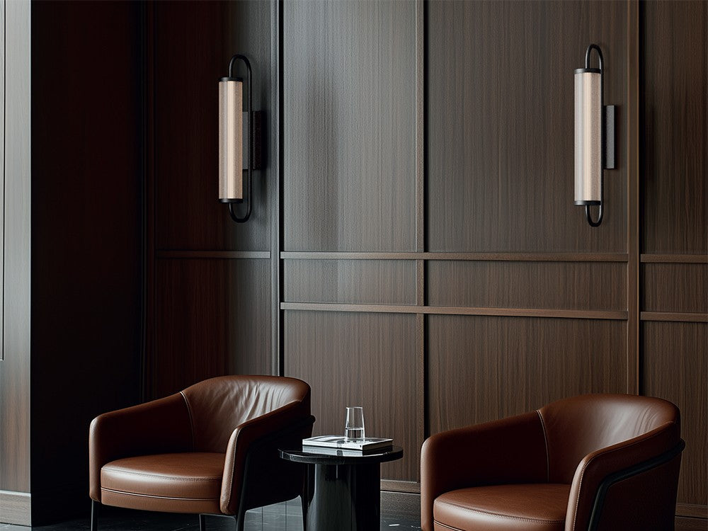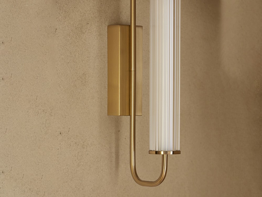 El aplique de pared Ison combina elegancia y funcionalidad en un diseño contemporáneo que destaca por su equilibrio entre materiales y proporciones. Su estructura en acero, disponible en acabado oro o negro mate, se acompaña de una pantalla cilíndrica de cristal transparente estriado que aporta textura y una difusión de luz especialmente atractiva.