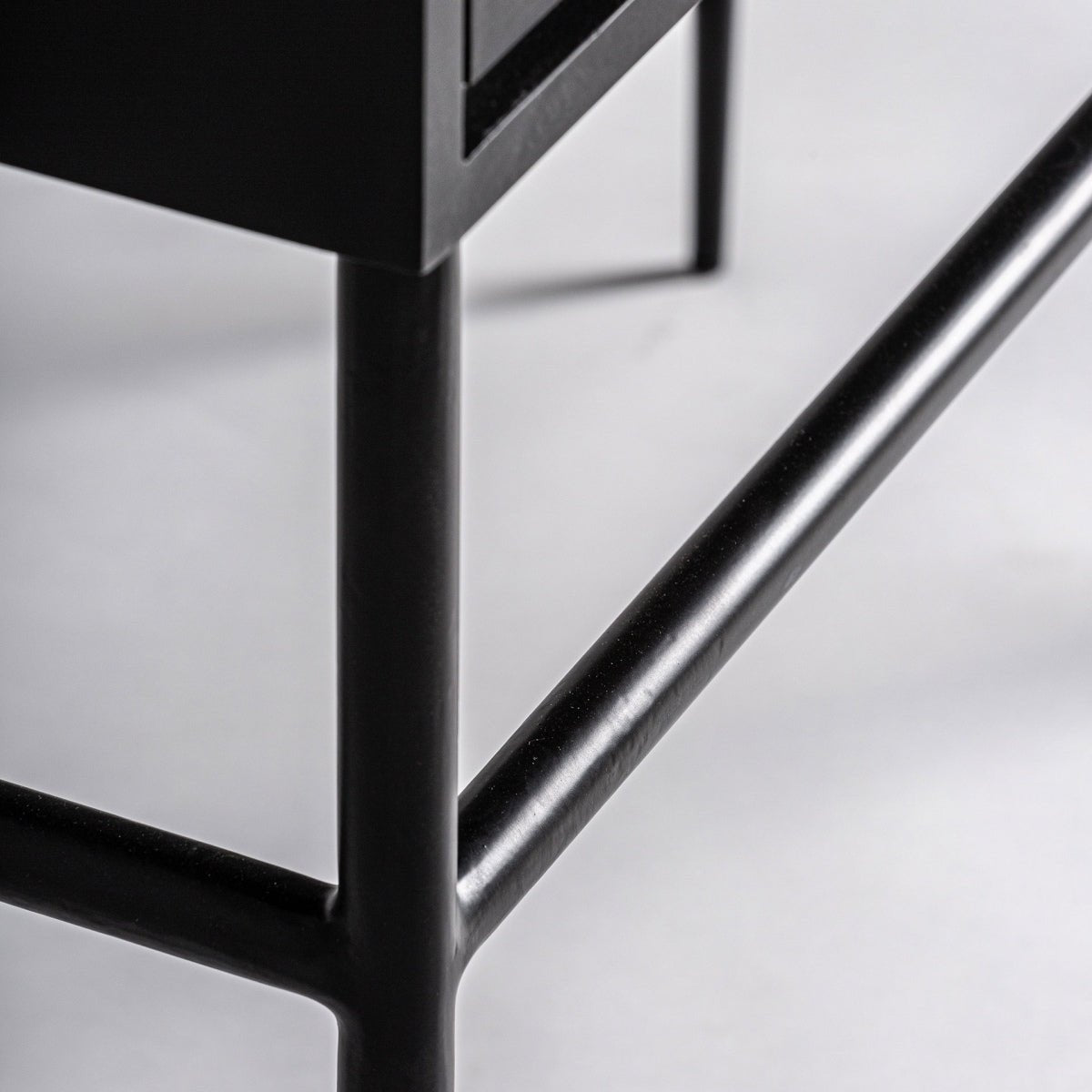 La estructura se complementa con elementos de hierro, que no solo refuerzan la solidez del mueble, sino que refuerzan su carácter industrial y moderno. La fusión de estos materiales crea un equilibrio perfecto entre resistencia y estilo, ideal para hogares actuales que valoran el diseño con personalidad.