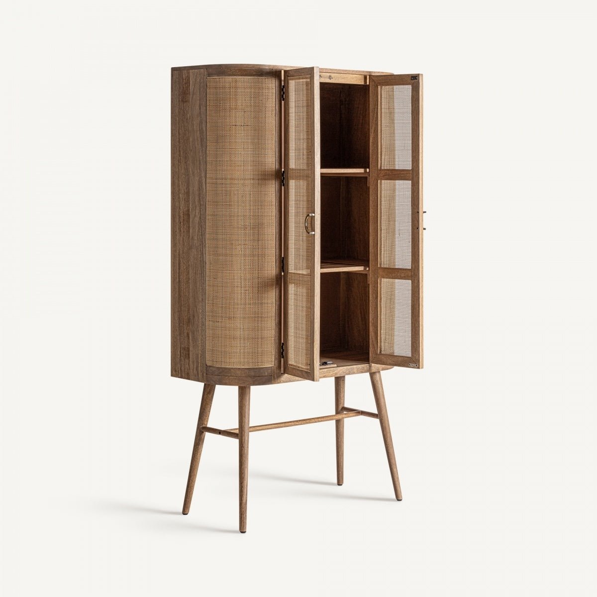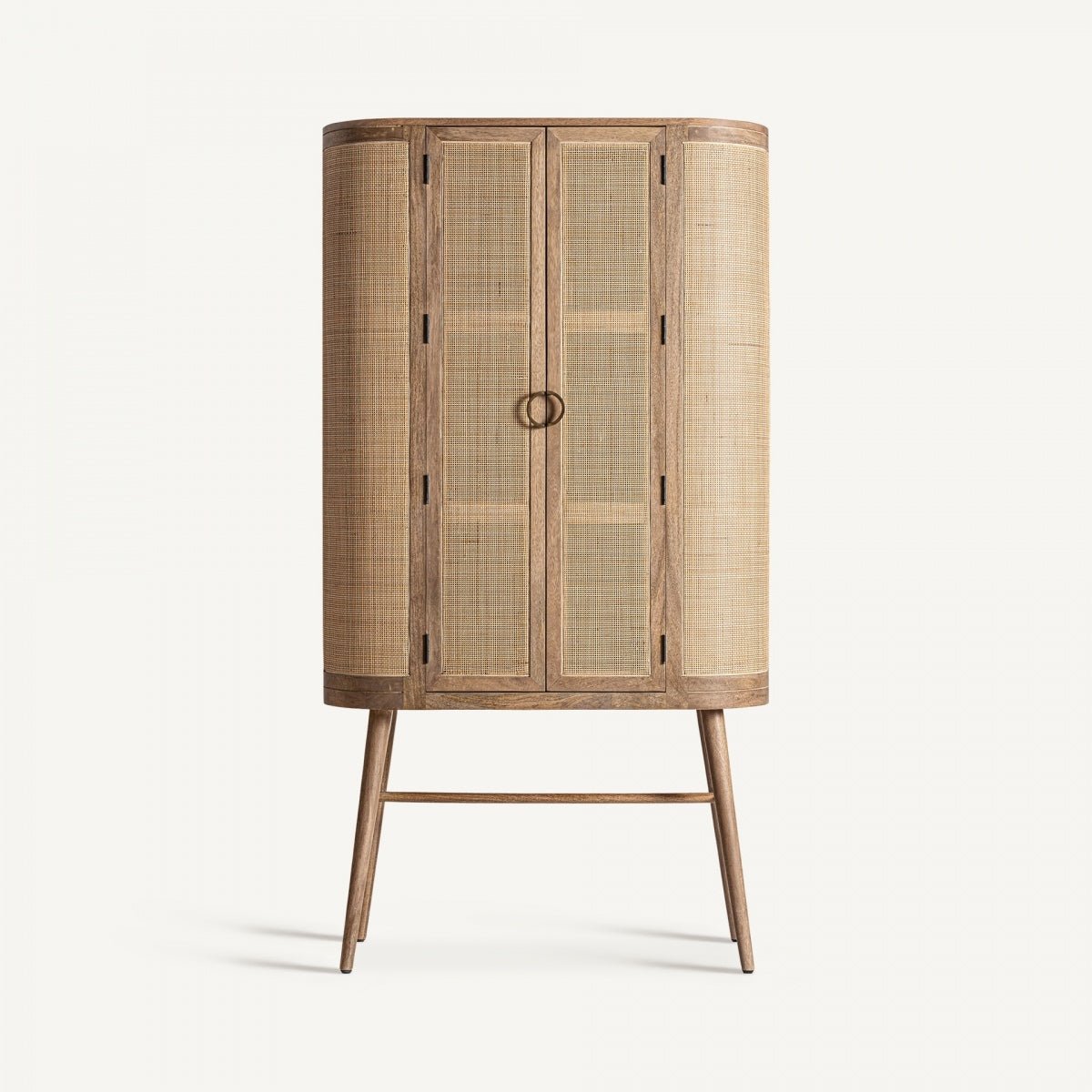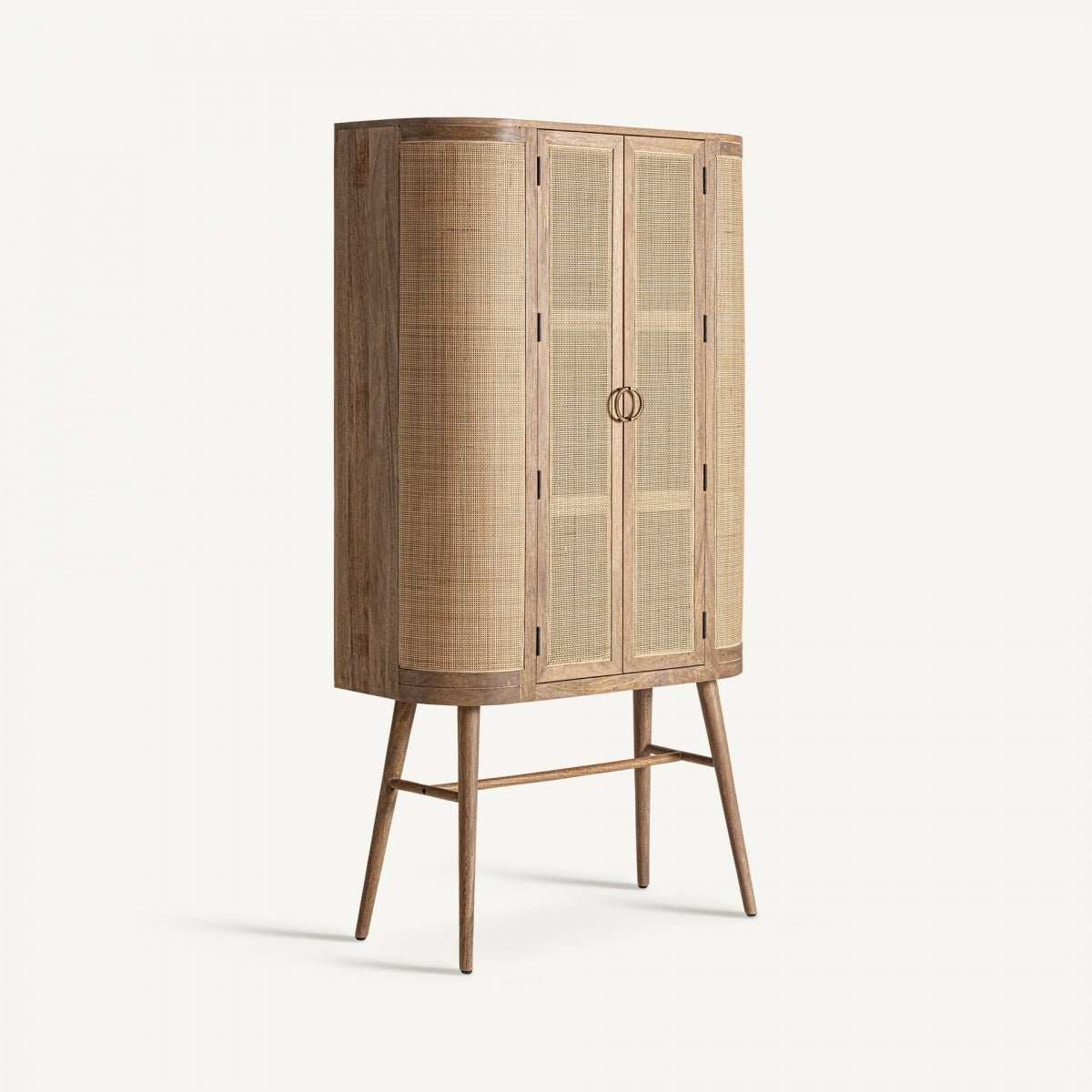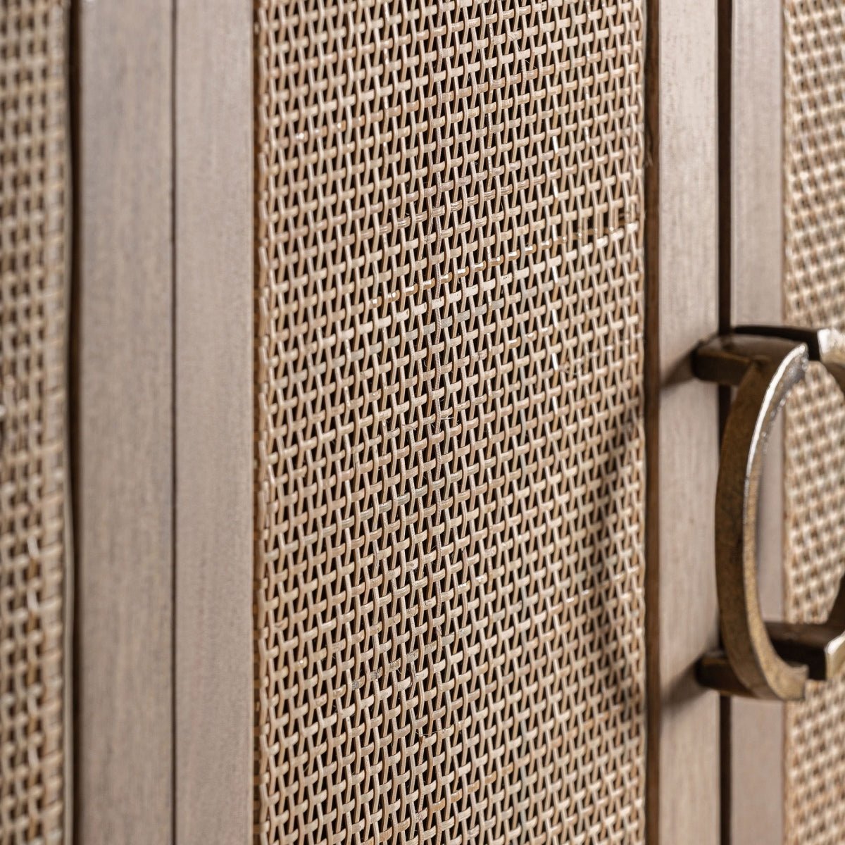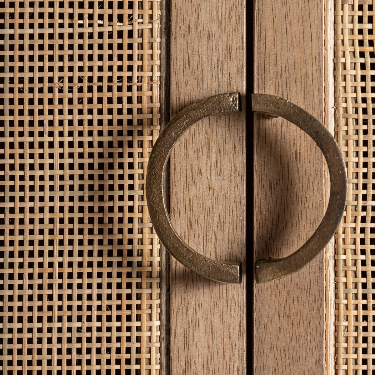 Lo que realmente distingue Yeckleb es su elegante combinación con paneles de mimbre en color marrón claro, que no solo aportan un sutil contraste visual, sino que también introducen un toque artesanal y orgánico. Esta mezcla de texturas y tonos lo convierte en un mueble versátil, ideal para interiores modernos, bohemios o incluso rústicos contemporáneos.