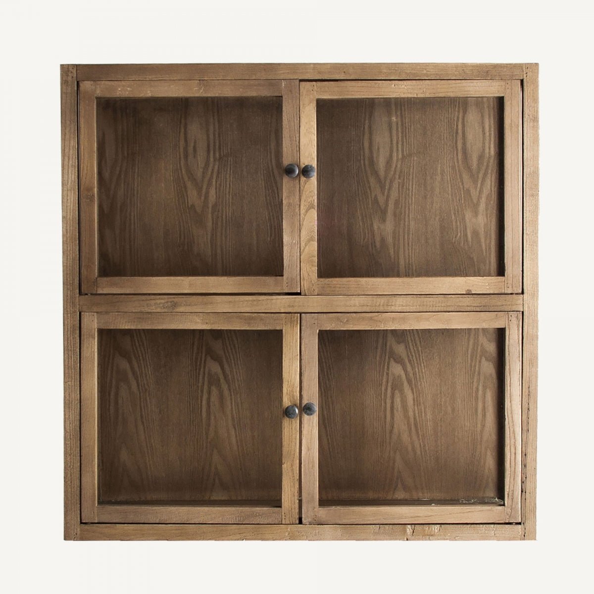 Vitrina Bern fabricada en madera de pino reciclada combinada con vidrio en color natural de estilo clásico. Este producto sólo incluye el mueble de la parte superior.