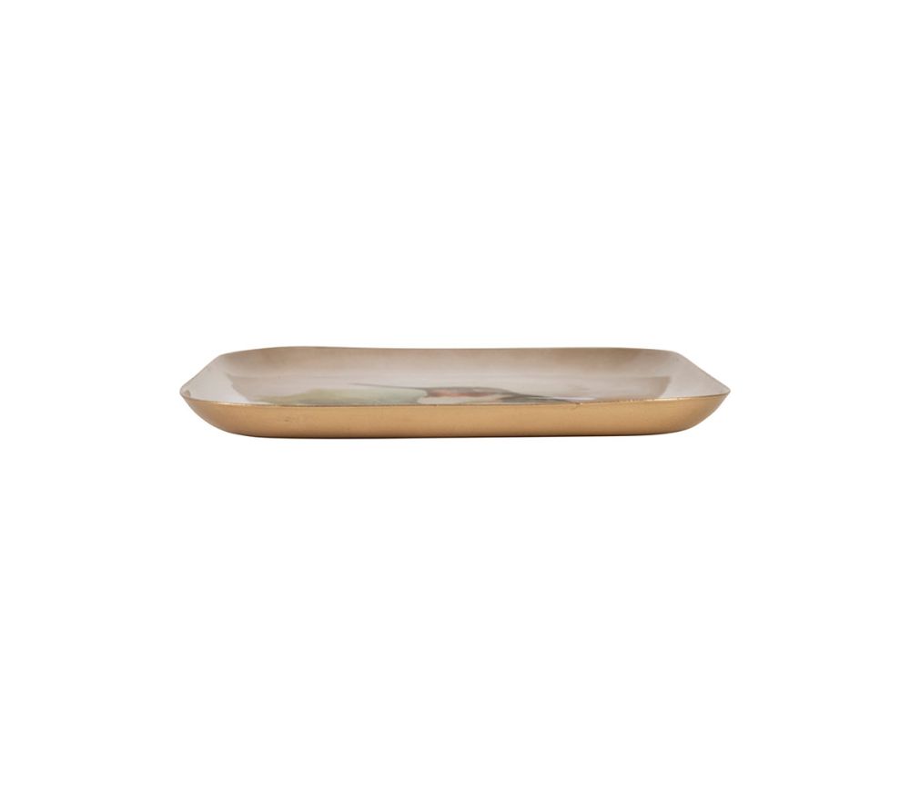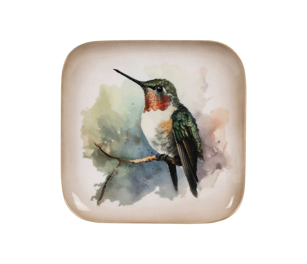 Dale un toque vibrante y sofisticado a tu decoración con una bandeja cuadrada de hierro de acabado resistente, realzada con un exclusivo diseño artístico de un colibrí en su rama. Su estructura firme y su estética tropical hacen de esta pieza un elemento funcional y decorativo, ideal para servir, organizar o simplemente destacar como acento visual en cualquier ambiente. Perfecta para interiores con estilo natural, étnico o contemporáneo que buscan incorporar detalles llenos de vida y personalidad.