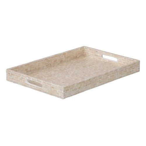 Bandeja elaborada en nácar color crudo, que destaca por su brillo natural y elegante. Una pieza decorativa y funcional, ideal para realzar cualquier espacio con un toque de sofisticación y delicadeza, perfecta tanto para uso práctico como para lucirse como objeto ornamental.