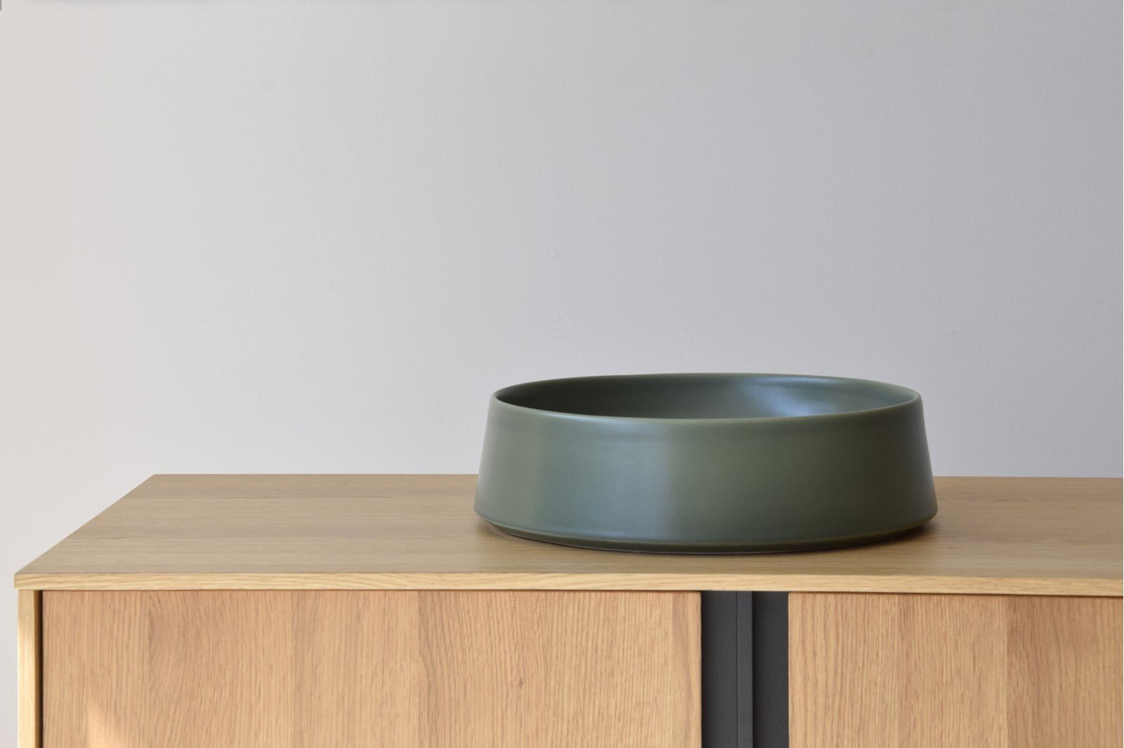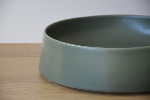 Centro de mesa realizado en cerámica de color verde oliva, acabado mate y liso, con líneas sencillas.La calidad y la perfección del material , resaltan resultando ser una pieza perfecta para cualquier espacio.