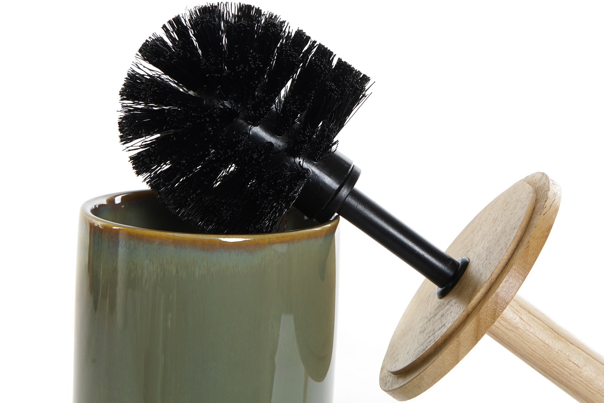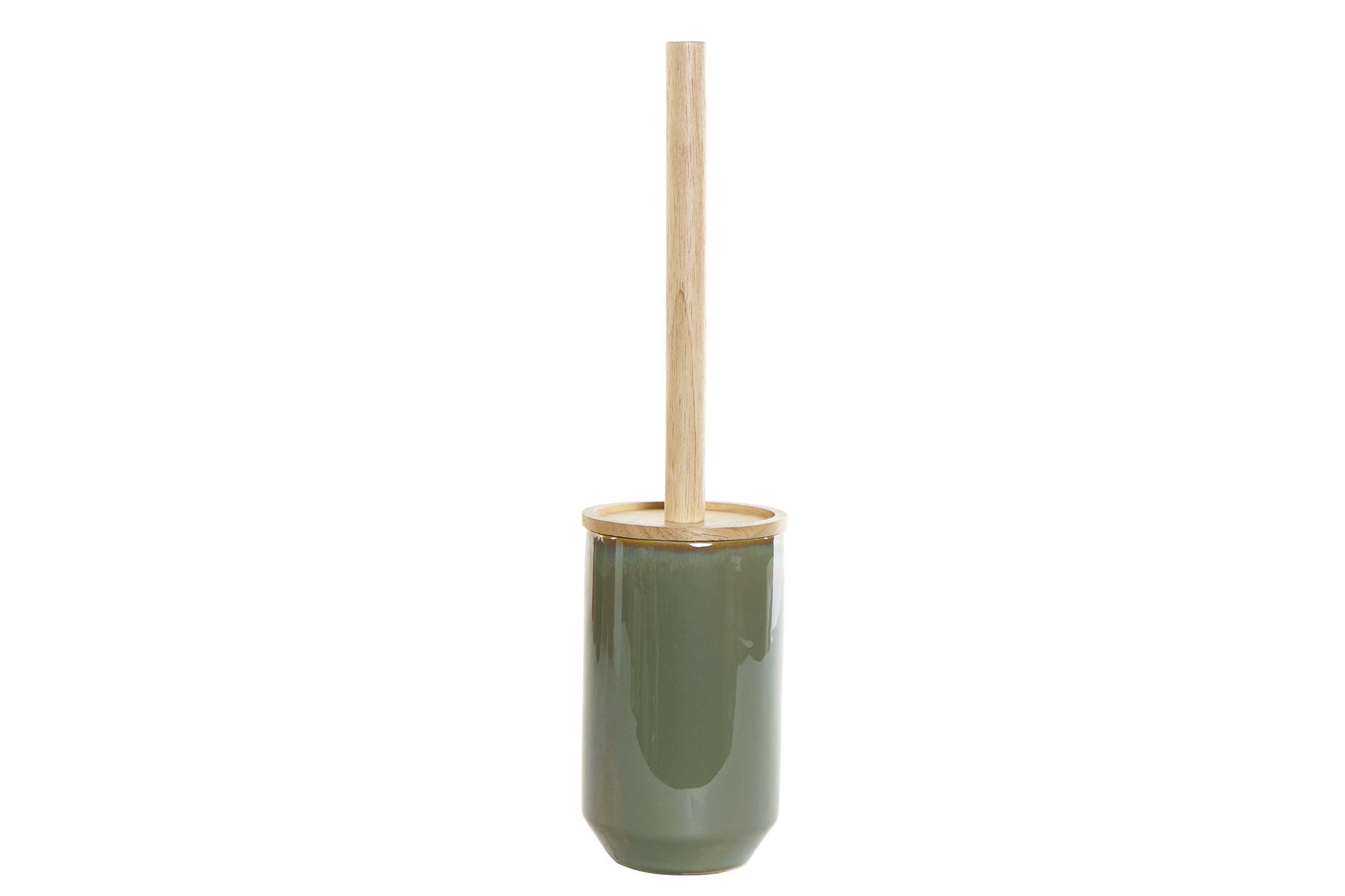 Estupendo escobillero fabricado en gres color verde y bambú color natural.