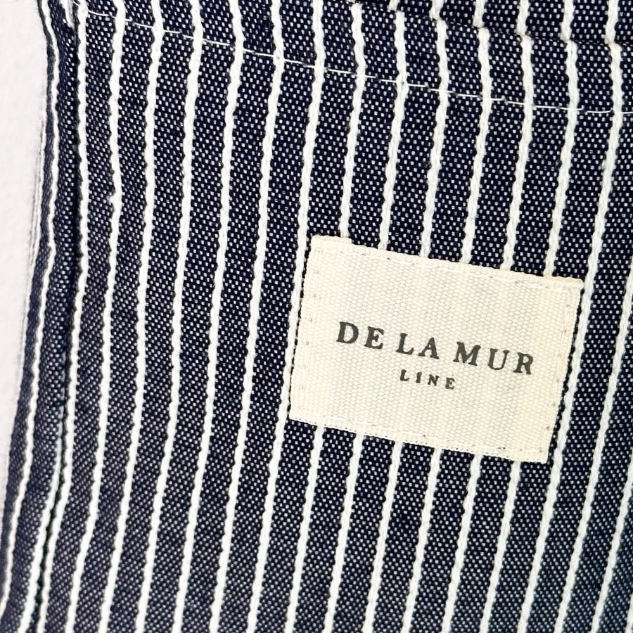 Bolso porta móvil para llevar tipo bandolera, con cremallera en la parte superior y asa larga ajustable de cinta de espiga de algodón de color crudo. Bolsillo sin cremallera en la parte exterior. Con tejido fino con estampado a rayas de color crudo sobre fondo azul marino. Forrado de tejido grueso de color gris en la parte interior. Para su correcto mantenimiento se aconseja lavarlo en frío a mano y no utilizar secadora.
