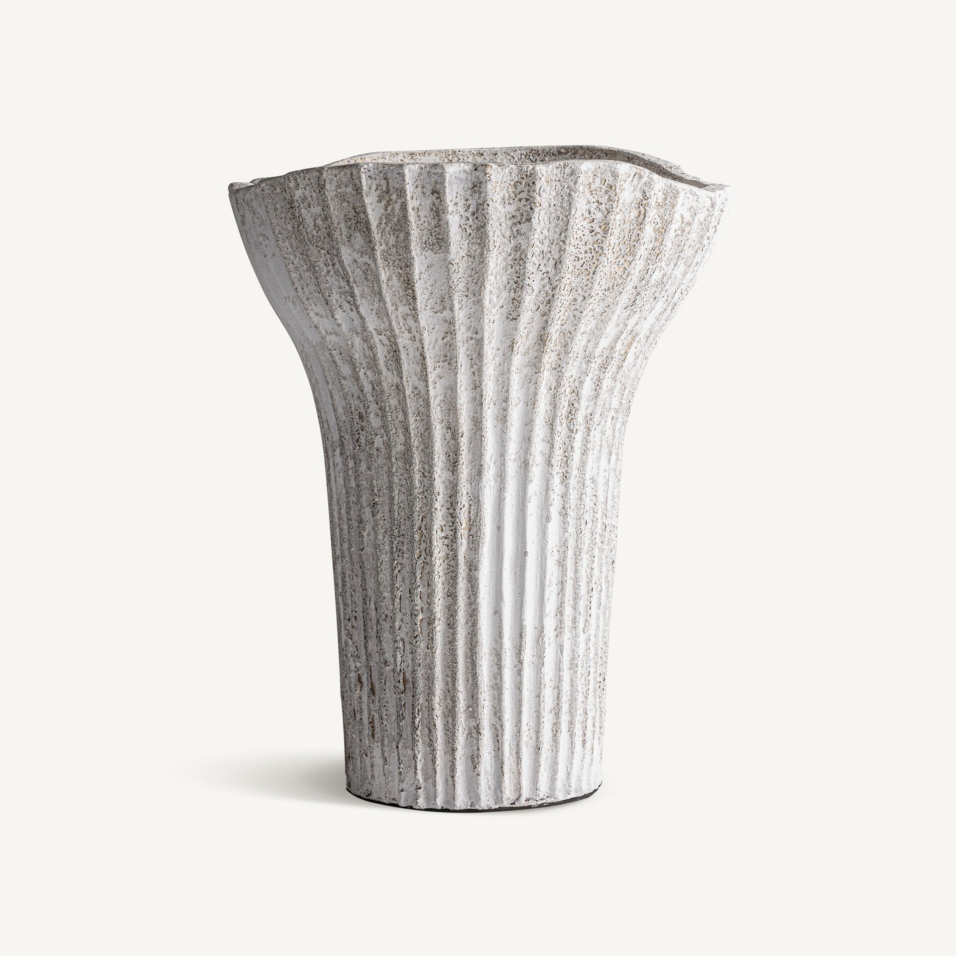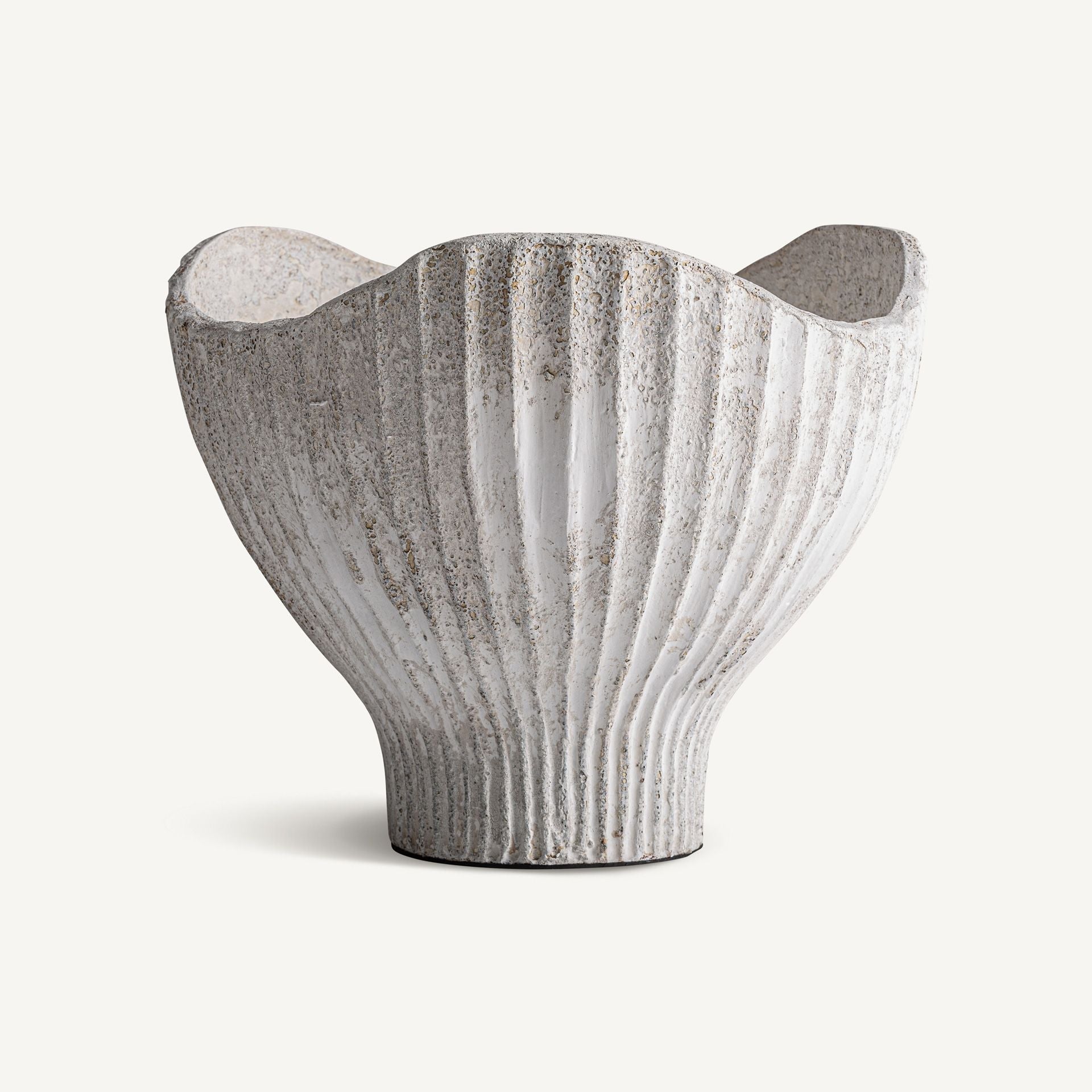 Su tono blanco roto, suave y versátil, permite integrarlo con facilidad en distintas paletas decorativas, desde interiores minimalistas hasta espacios más rústicos o mediterráneos. Cada detalle ha sido cuidadosamente trabajado para reflejar un estilo sofisticado pero acogedor, ideal como punto focal en mesas de comedor, consolas o estanterías.