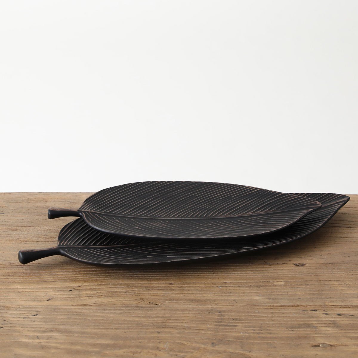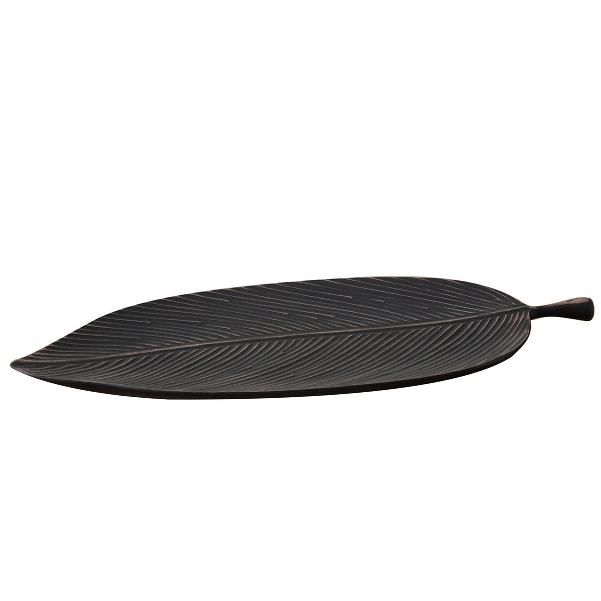 Precioso centro de mesa en forma de hoja fabricada en resina color negro.