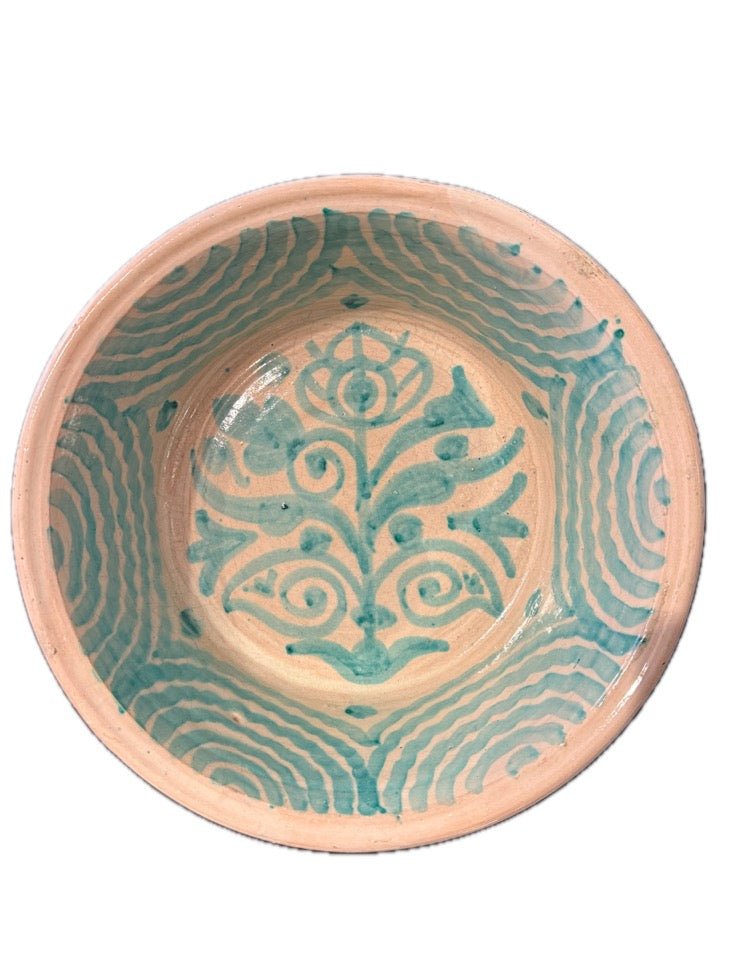 Cada una de nuestras piezas de Fajalauza es el resultado de un proceso completamente artesanal, heredero de la tradición granadina y marroquí. Al estar hechas y esmaltadas a mano, ninguna pieza es perfecta ni idéntica a otra: pueden apreciarse leves asimetrías, irregularidades en la pintura, zonas con distinto grosor de esmalte o pequeñas marcas propias del proceso de cocción.