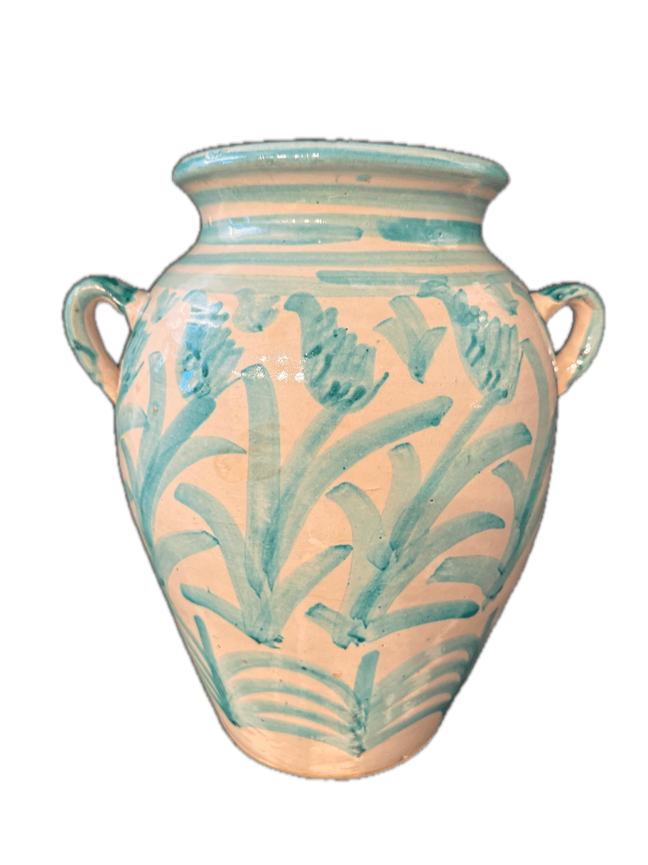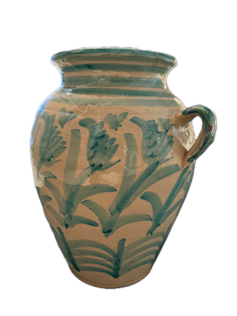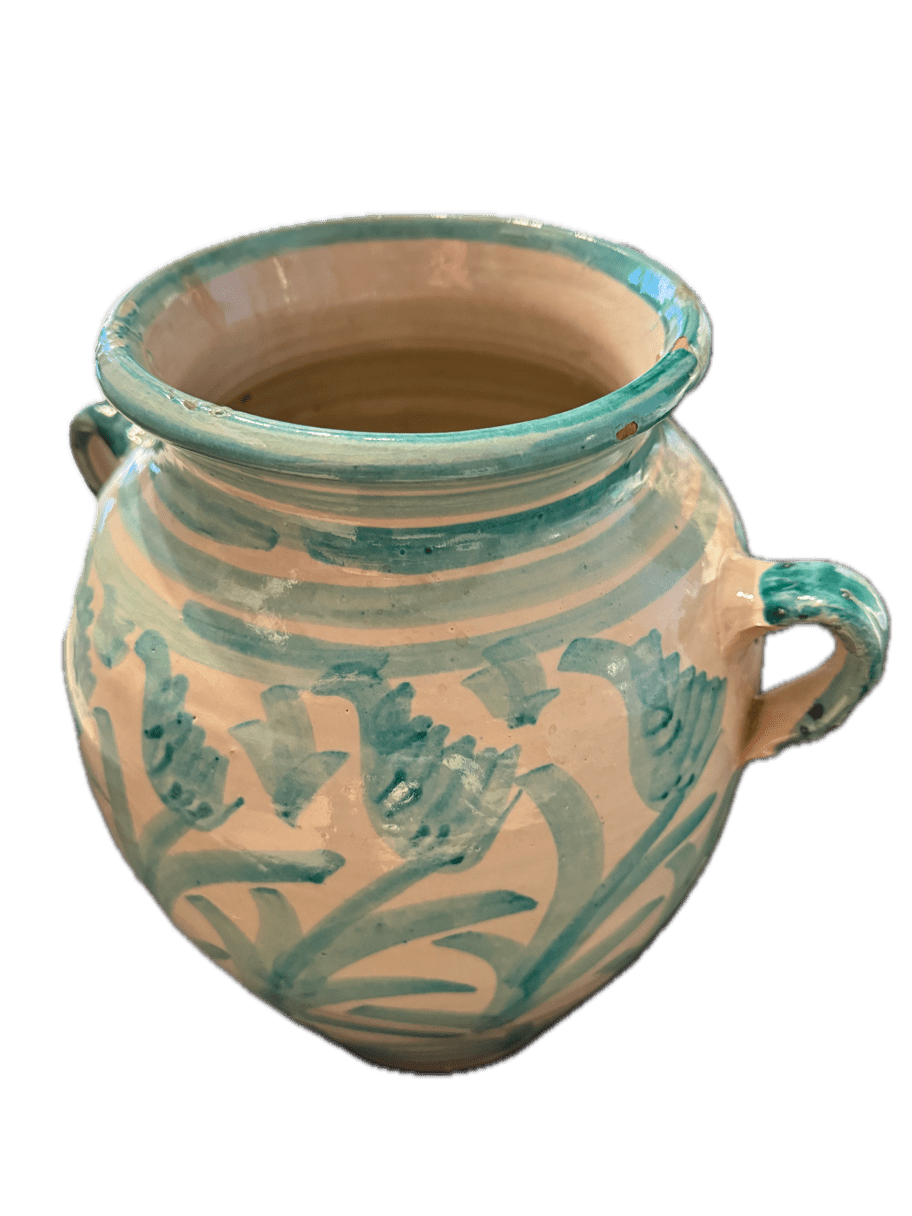 Maravillosa vasija fabricada en cerámica de Fajalauza en color verde agua. Debido a su fabricación artesanal, es posible encontrar ligeras variaciones en el color, el tamaño o la forma, lo que la convierte en una pieza única y con encanto.
