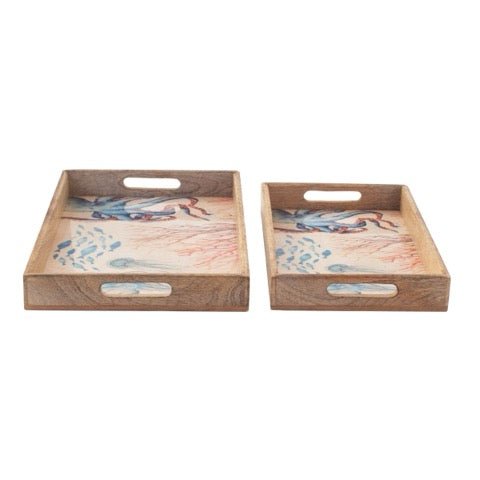 Bandejas rectangulares de madera con ilustración marina