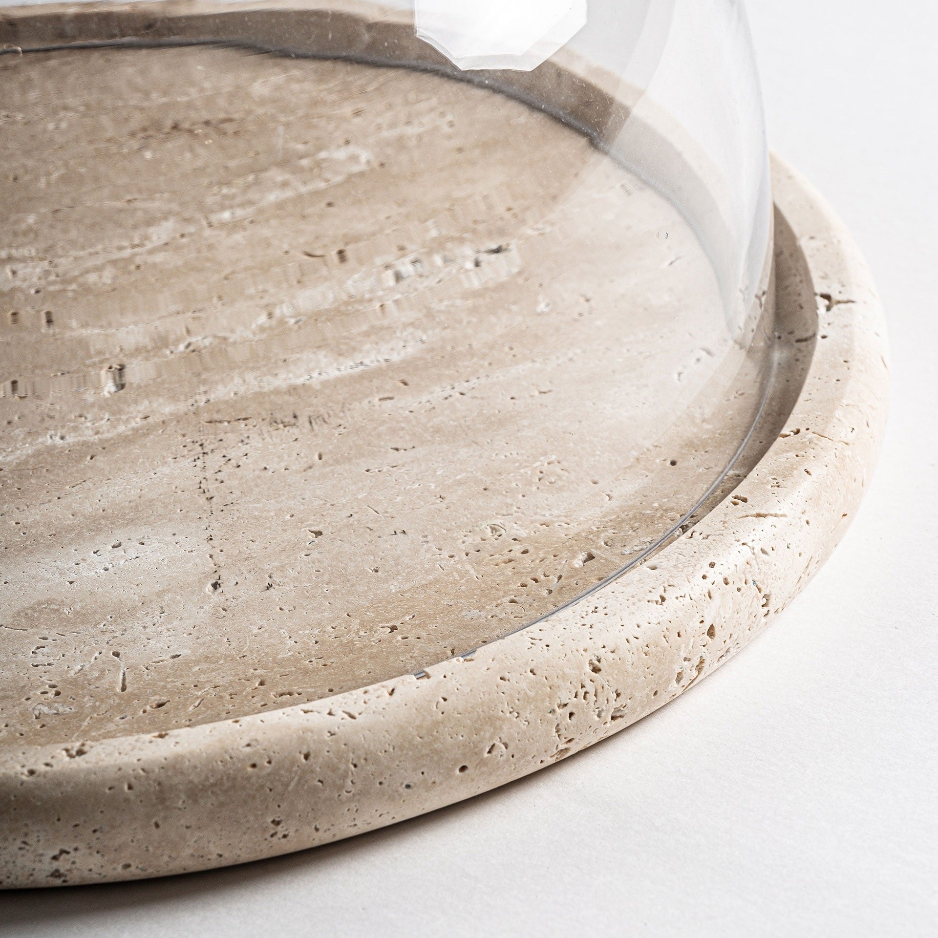 Fabricada con una base de mármol natural en tono beige, su superficie pulida y vetas orgánicas aportan textura, solidez y una belleza atemporal. El mármol, símbolo de lujo y durabilidad, sirve como base perfecta para destacar quesos, frutas, panes y delicatessen con una presentación impecable.