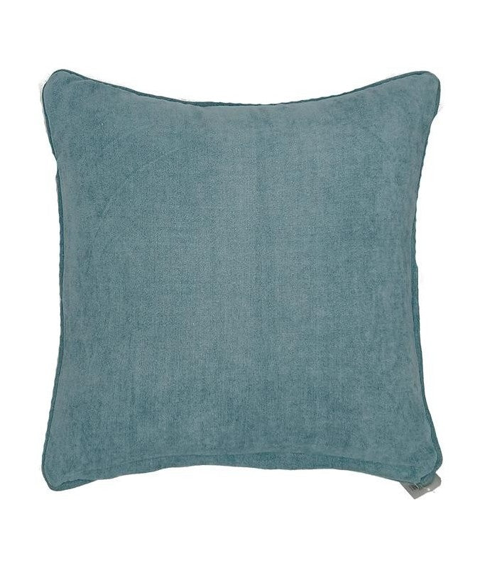 Precios cojín fabricado en tela de color beige o azul. Relleno incluido. 100% Poliéster. Es desenfundable y el cierre es con cremallera.