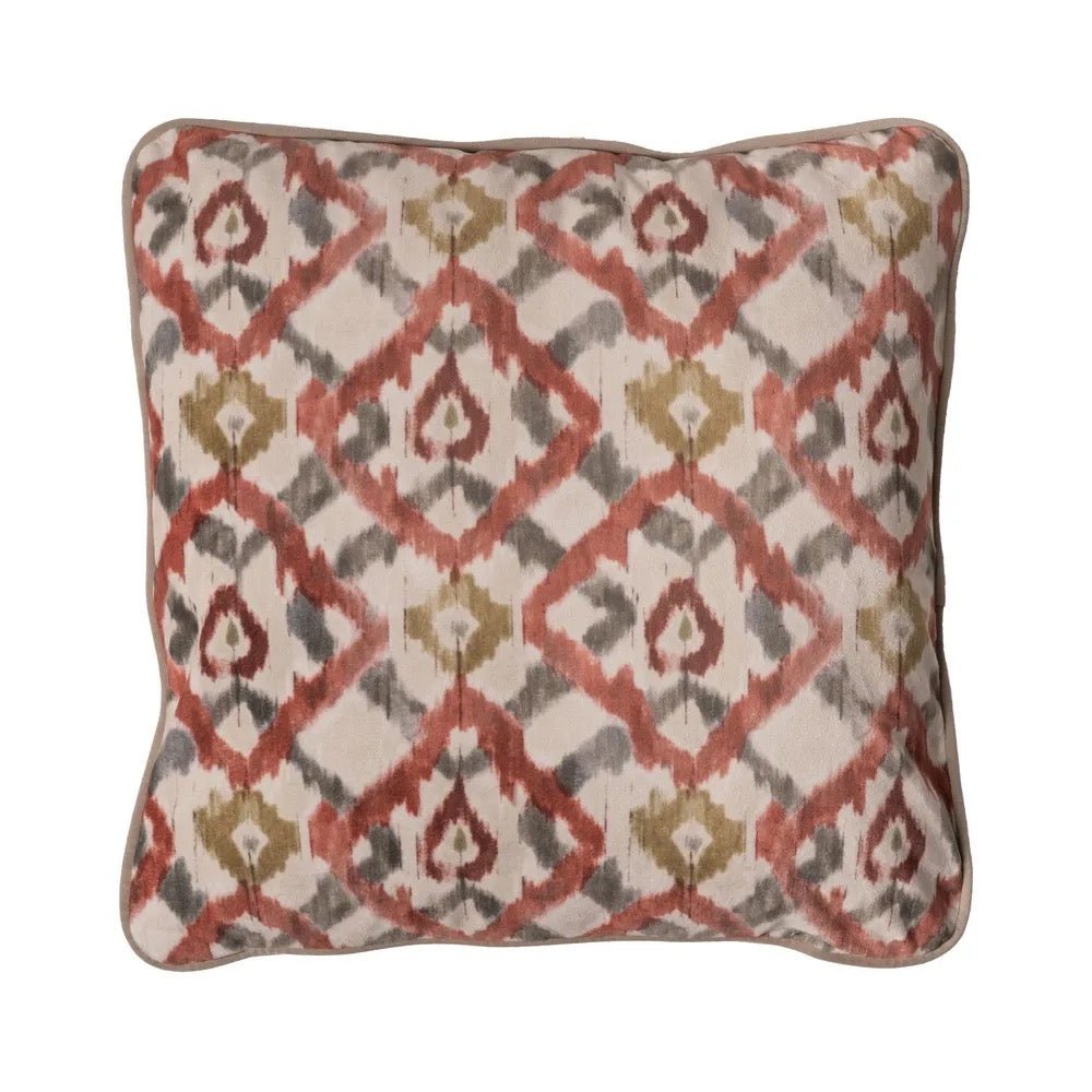 Precioso cojín estampado fabricado 100% poliéster en multicolor, el relleno en poliéster envasado al vacío, instrucciones de lavado: