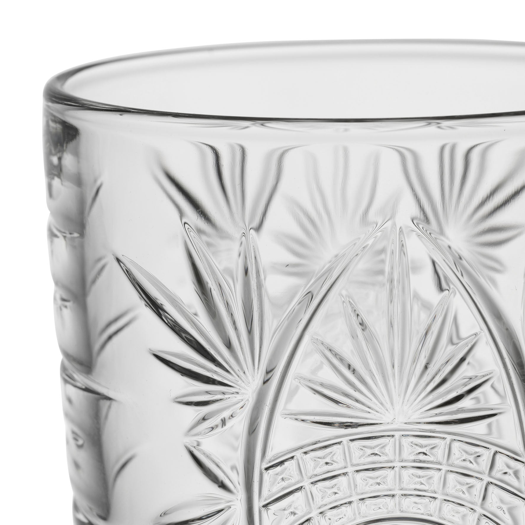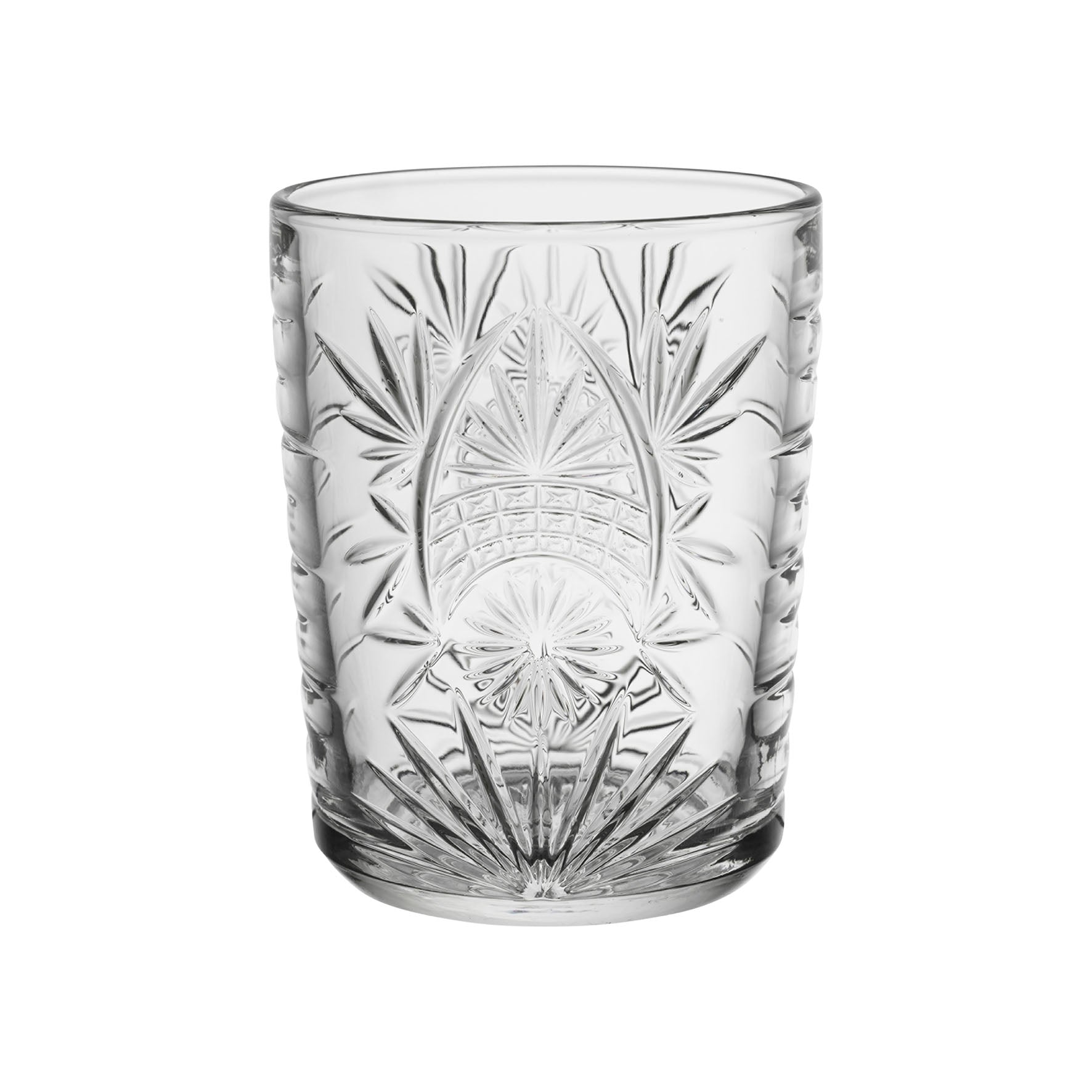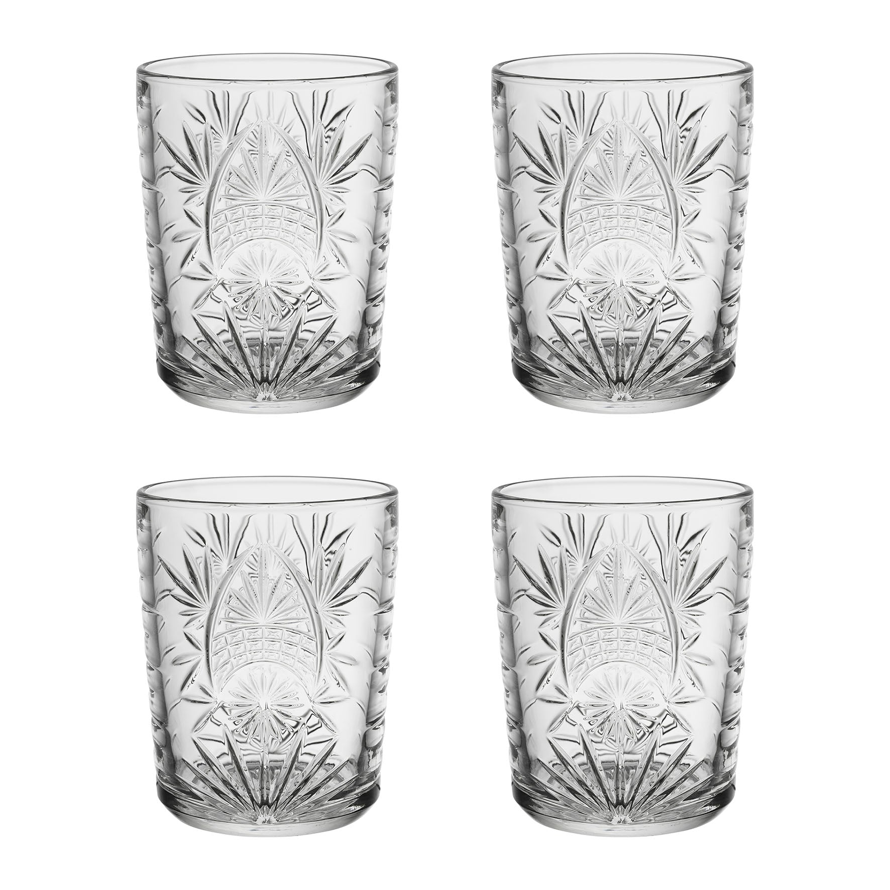 Precioso set de 4 vasos con relieve fabricados en vidrio en transparente
