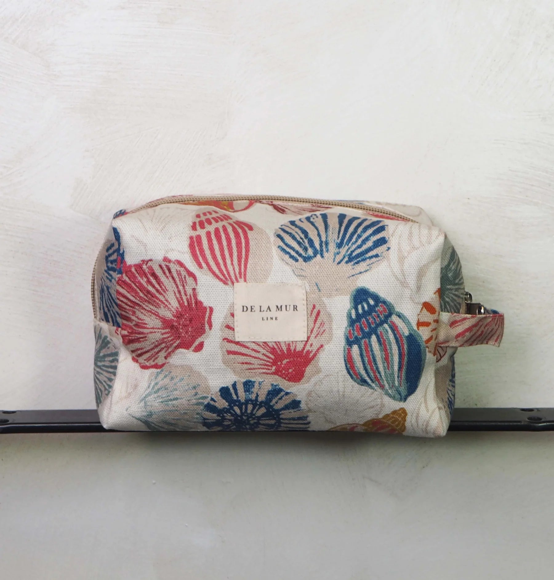 Neceser mediano con cremallera en la parte superior y con asa lateral. Con estampado marinero de conchas en tonos rosas y azules. Para su correcto mantenimiento se aconseja lavarlo en frío y no utilizar secadora.
