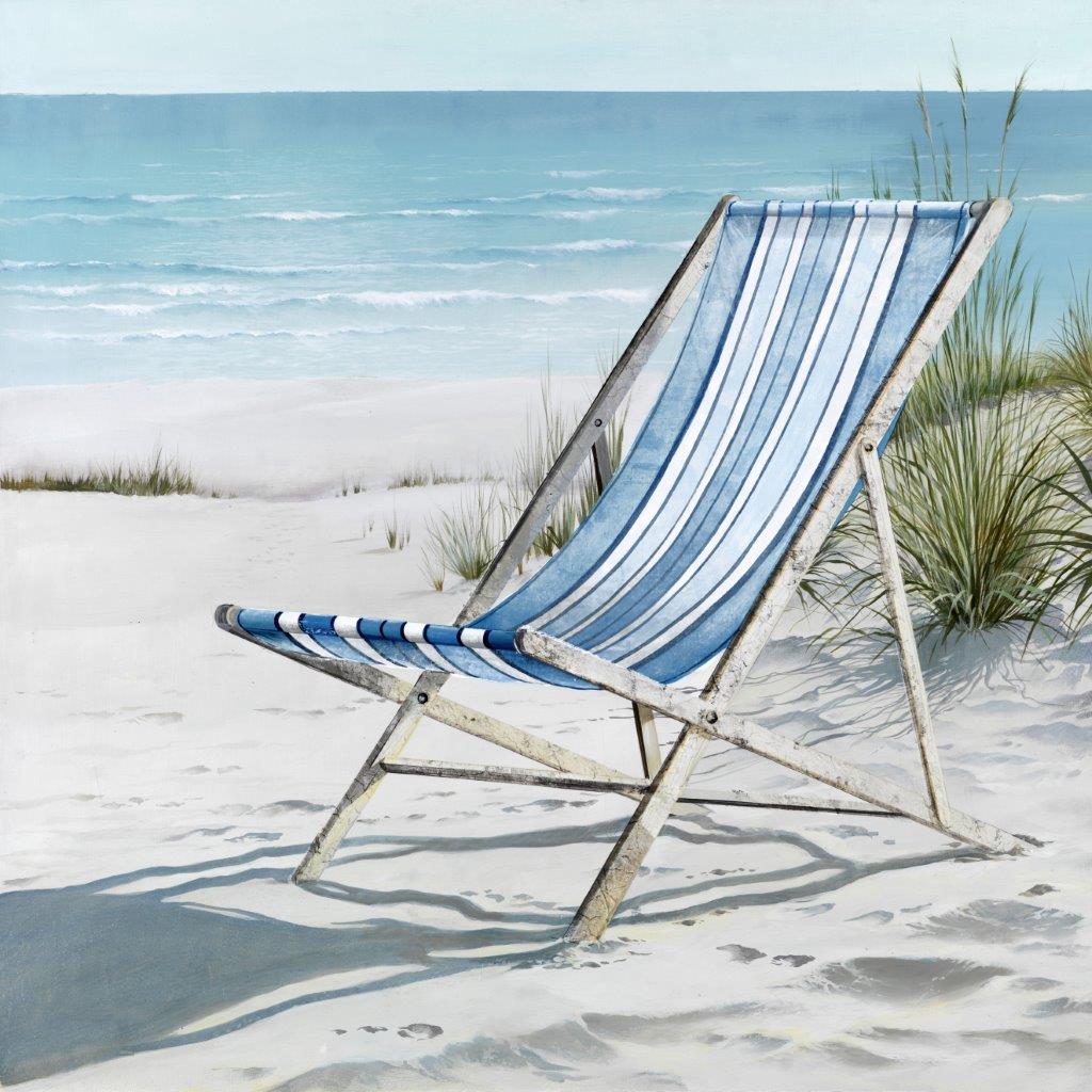 Nuestro cuadro "Tumbona en la Playa" tiene un fondo beige impreso en lienzo y posteriormente está pintado a mano antes de ser estirado sobre un bastidor de madera. Original y colorido, dará un toque personal e intransferible a cualquier espacio.