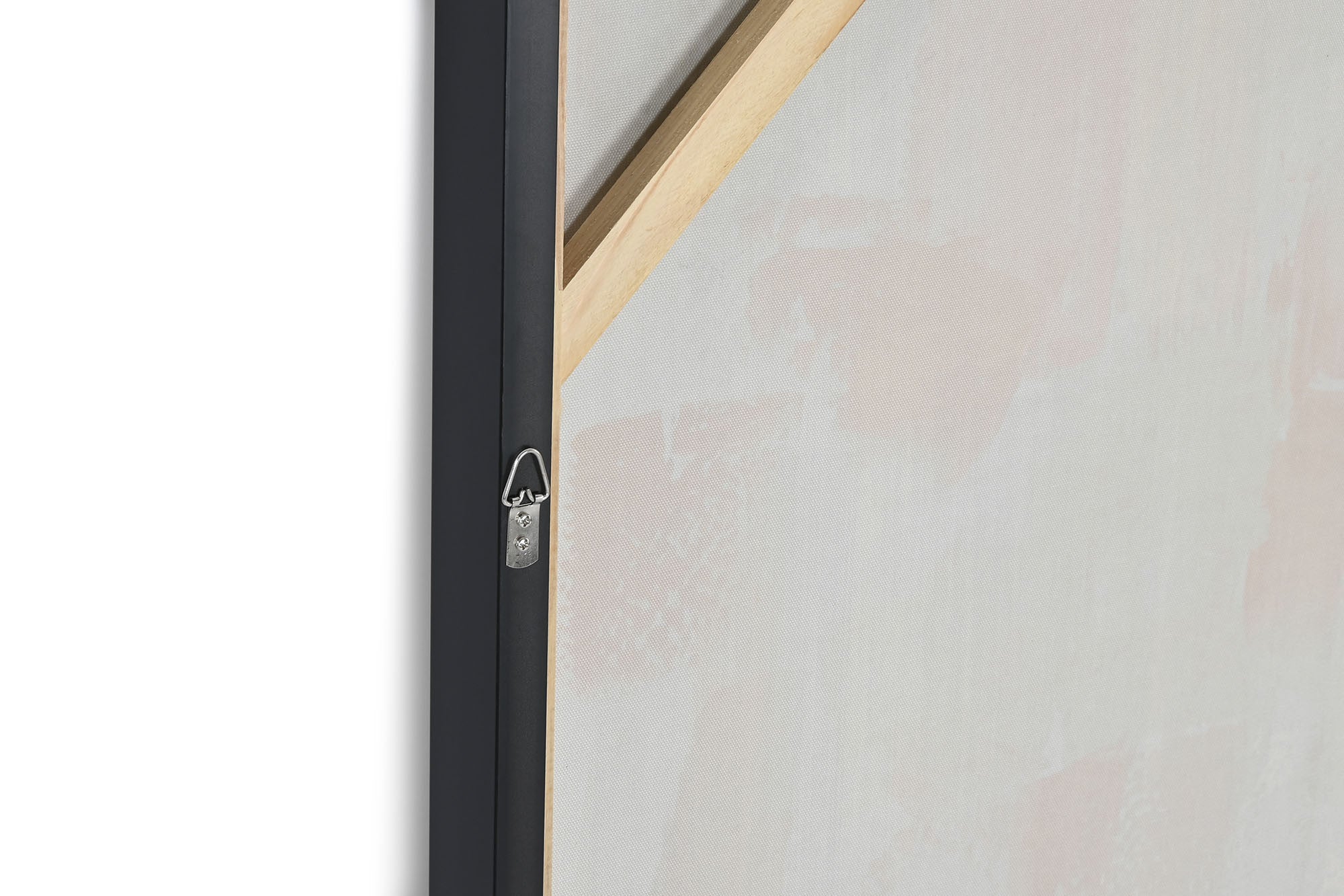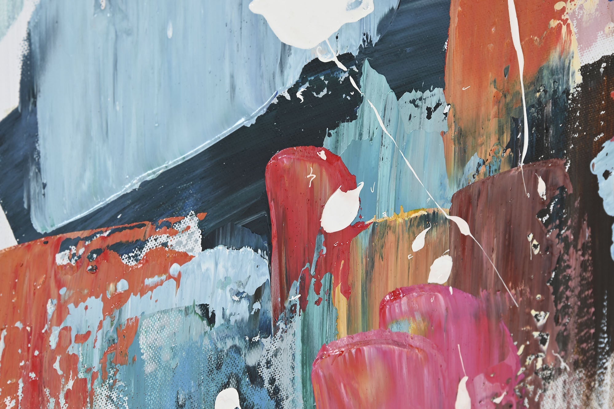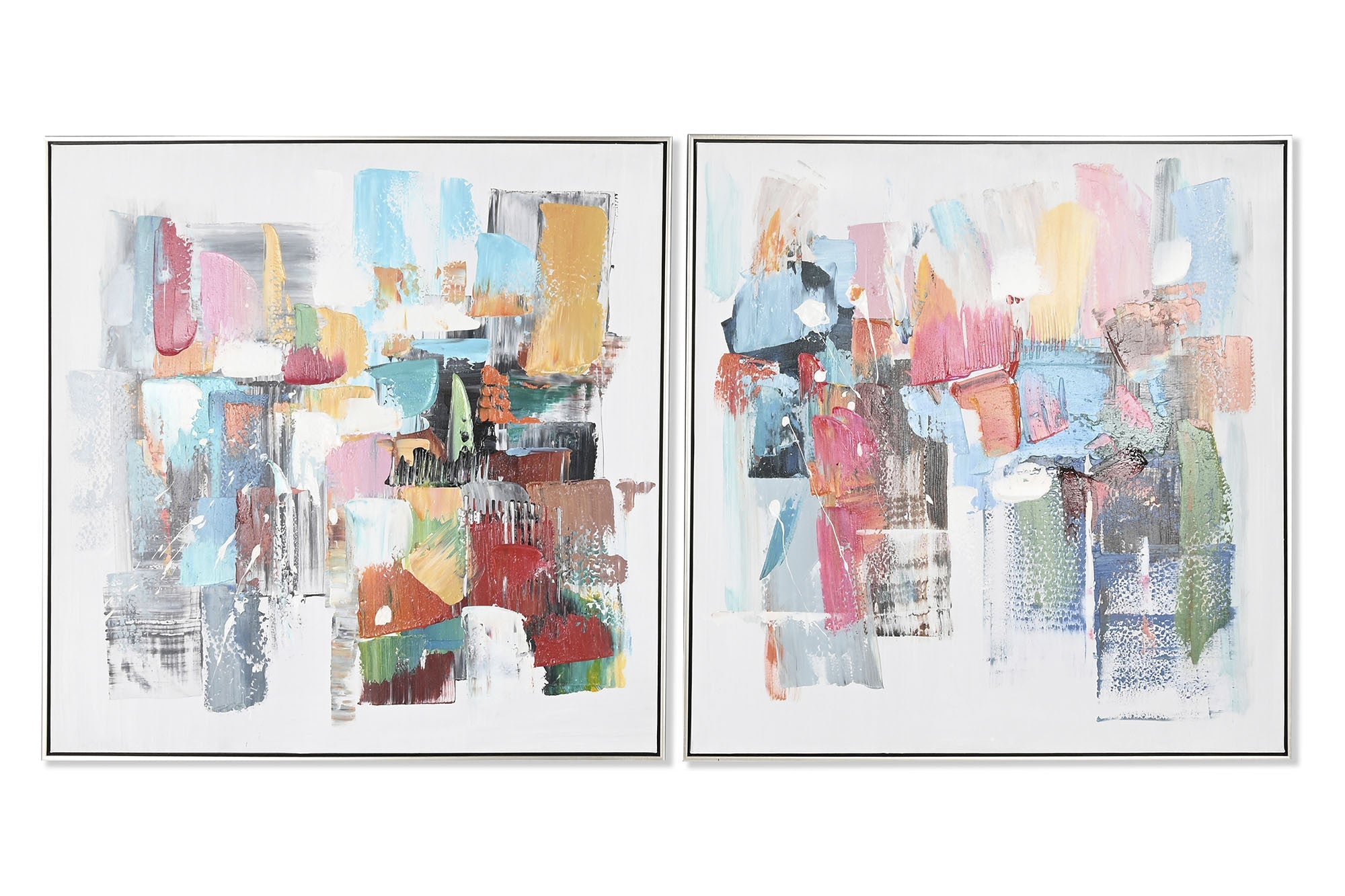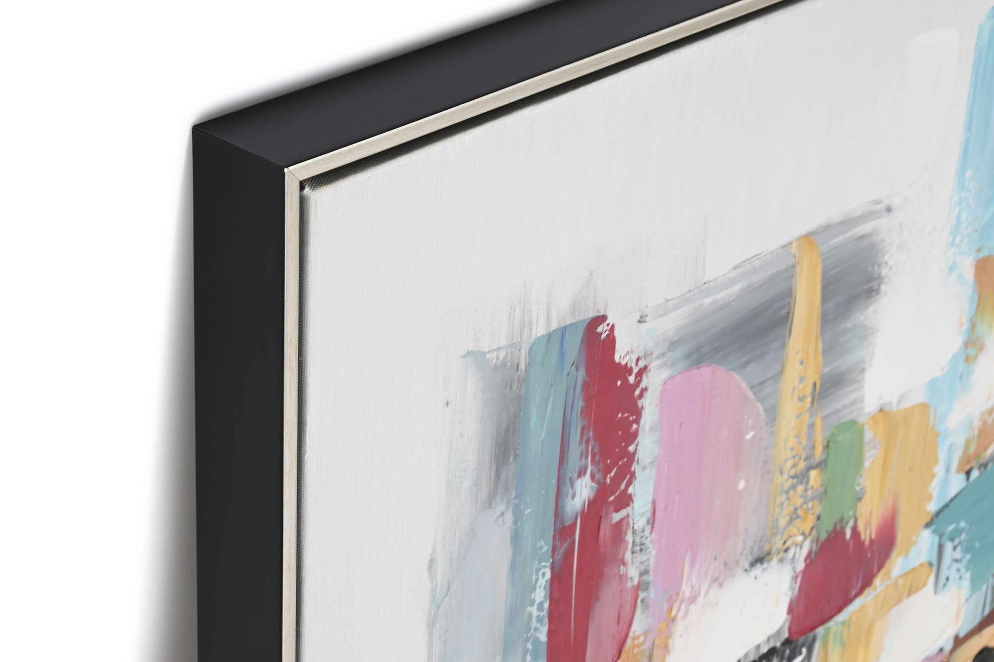 Precioso cuadro abstracto sobre lienzo pintado a mano multicolor con marco negro.