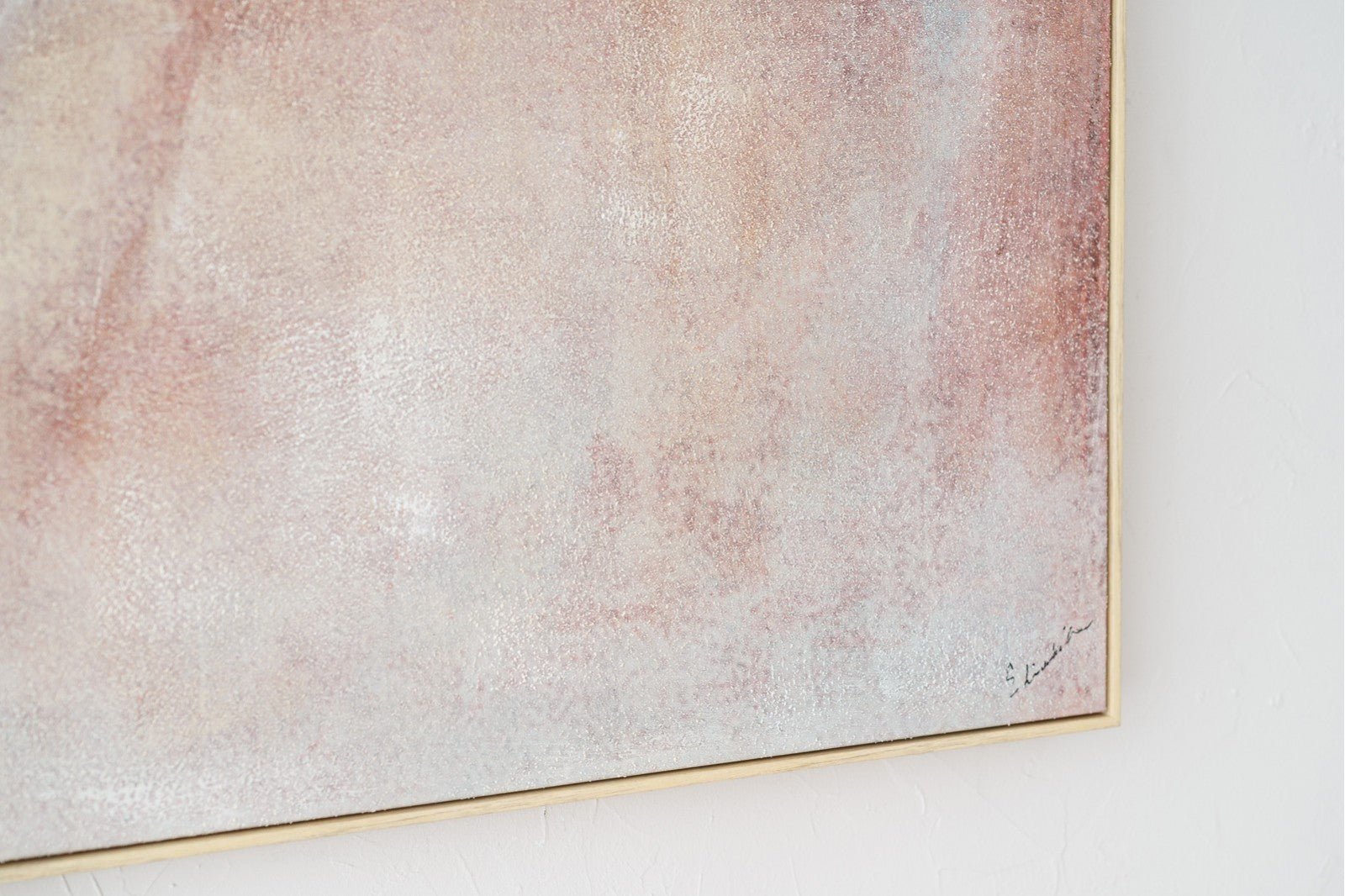 Su composición, aparentemente espontánea pero cuidadosamente equilibrada, transmite armonía y profundidad, mientras que el marco en acabado natural realza la textura y los contrastes del lienzo, integrándose con elegancia en ambientes contemporáneos o de estilo más clásico.