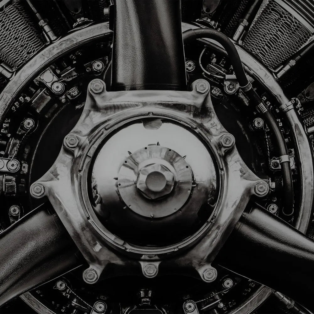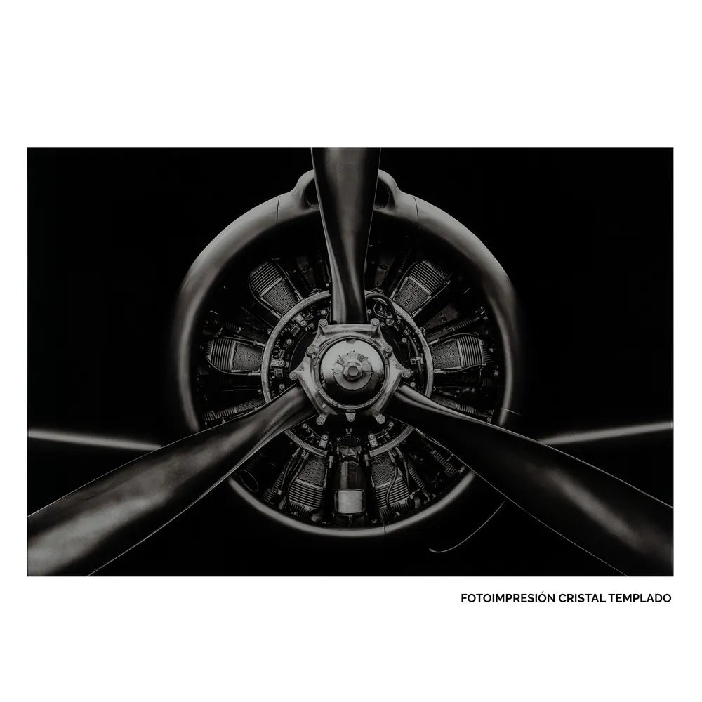 Una imagen potente y cargada de carácter que rinde homenaje al diseño mecánico y a la estética industrial. Esta fotoimpresión sobre cristal templado muestra con todo detalle las hélices de un avión clásico, en un impactante juego de luces y texturas en blanco y negro.