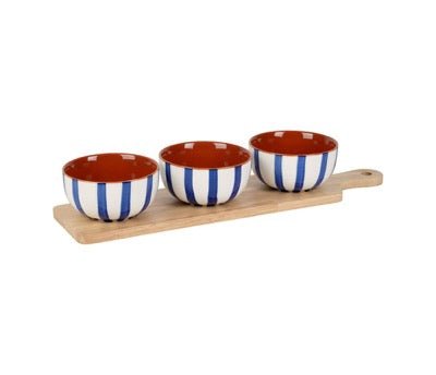 Set de 3 Cuencos Aperitivo con Tabla Rayas del Bosque