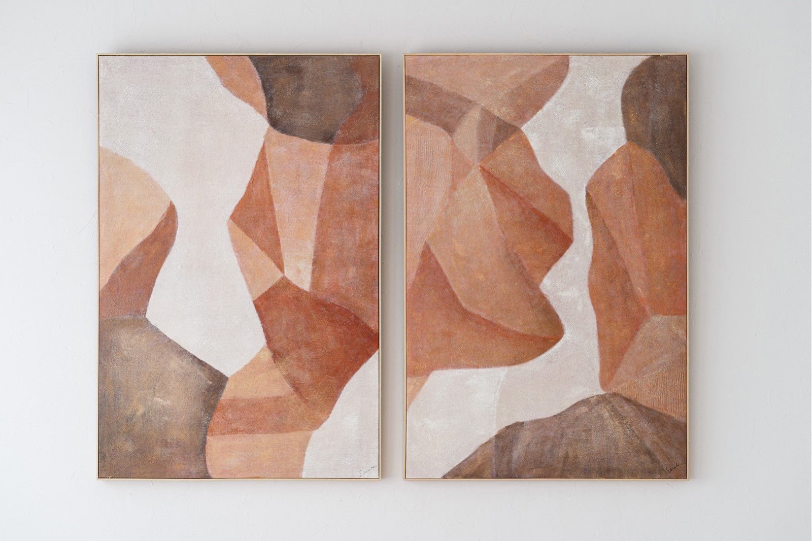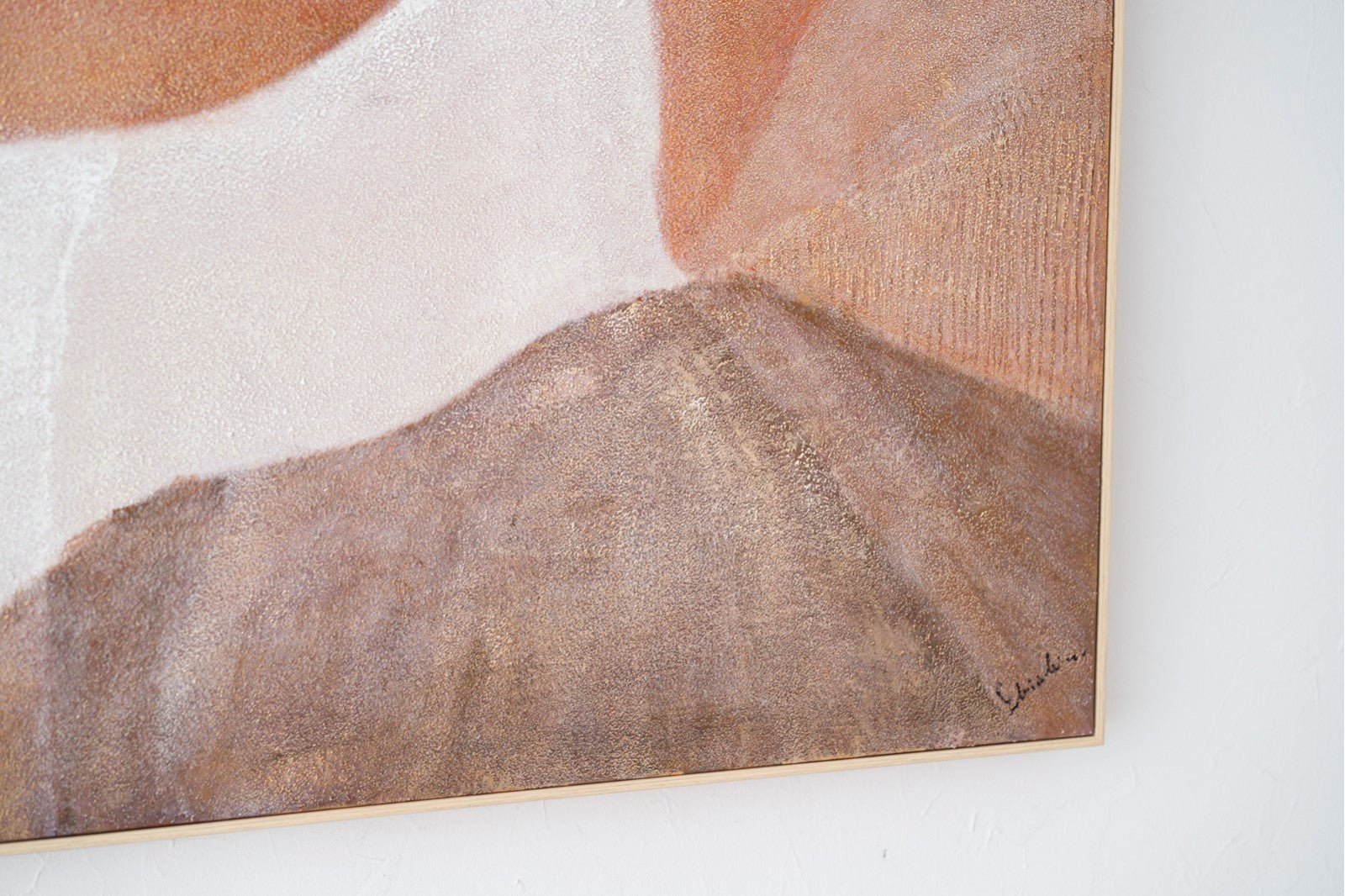 El cuadro abstracto Brasom es una pieza única realizada a mano sobre lienzo, que aporta arte y personalidad a cualquier espacio. Los tonos ocres y blancos se superponen creando formas y volúmenes que dan lugar a un lienzo lleno de textura, profundidad y movimiento. Cada obra es única por su acabado artesanal.