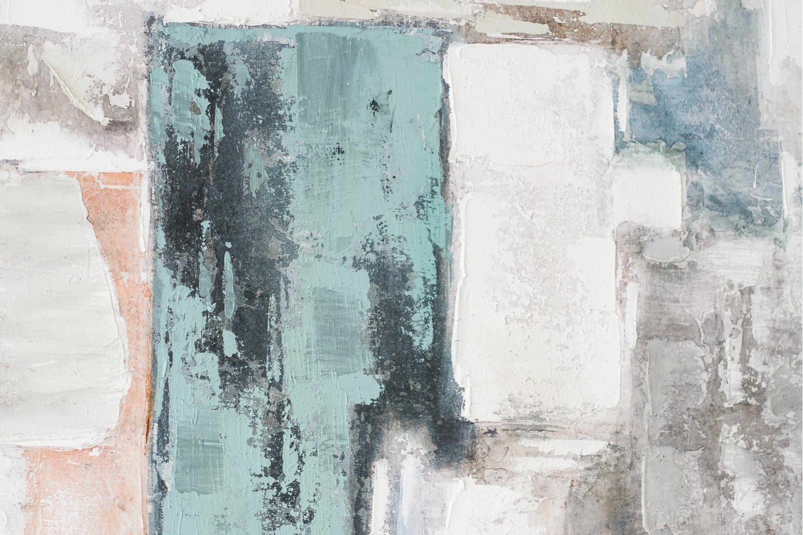 El cuadro abstracto Naro es una obra realizada a mano sobre lienzo que destaca por su combinación de textura, color y relieve. Los tonos beige, blancos, grises y verdes se aplican de forma equilibrada, alternando zonas de textura gruesa con áreas más suaves para crear formas y relieves que aportan dinamismo y carácter a la pieza. Cada cuadro es único por su acabado artesanal.