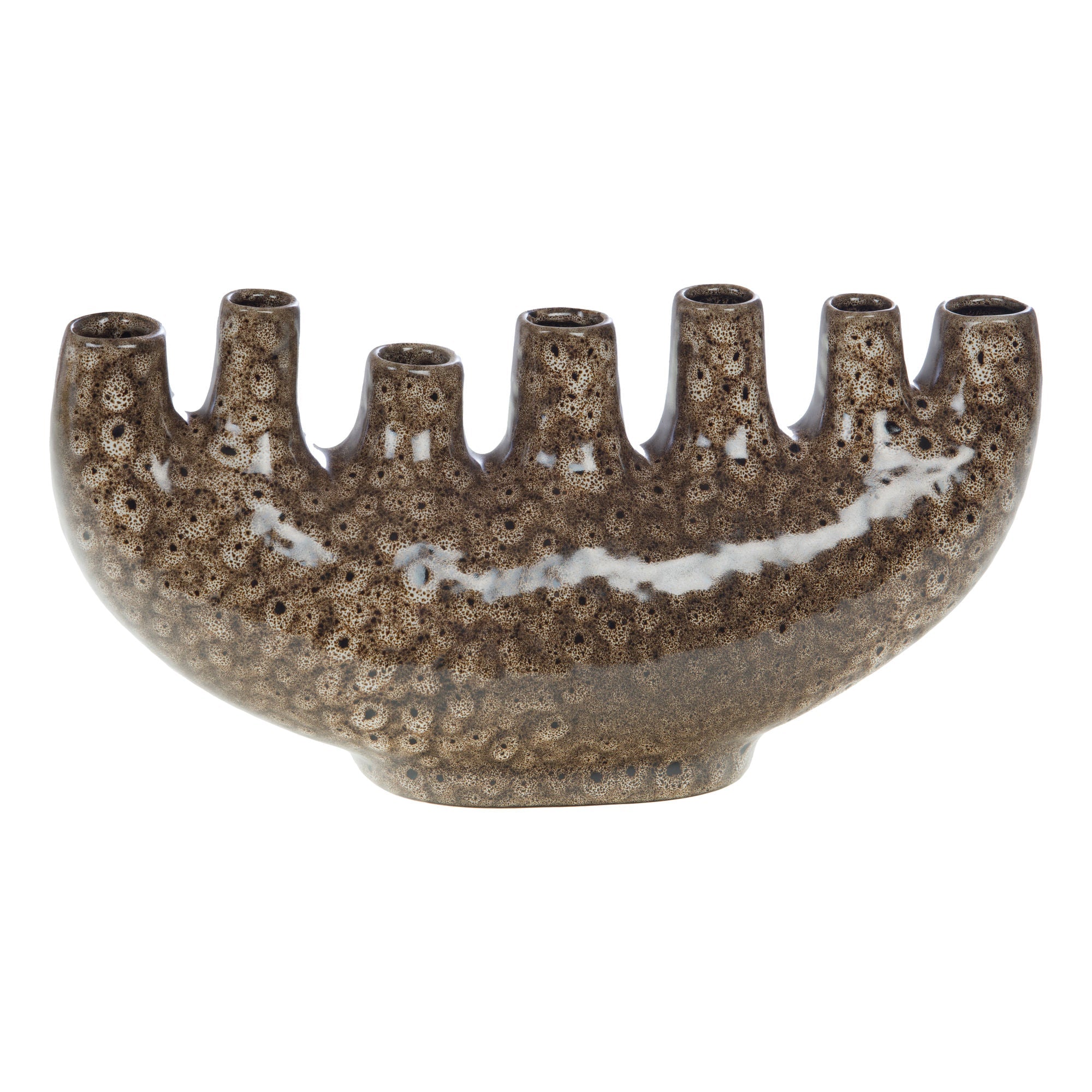 El jarrón Artemis combina la esencia artesanal con un estilo contemporáneo. Fabricado en cerámica de alta calidad, destaca por su diseño original y texturizado, cuyas múltiples aberturas aportan un carácter artístico y funcional. Una pieza que invita a jugar con las composiciones florales o a lucirse como elemento decorativo por sí misma.