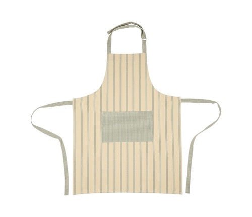 Precioso delantal fabricado en algodón 100% ajustable con anilla metálica con colores verde y beige.