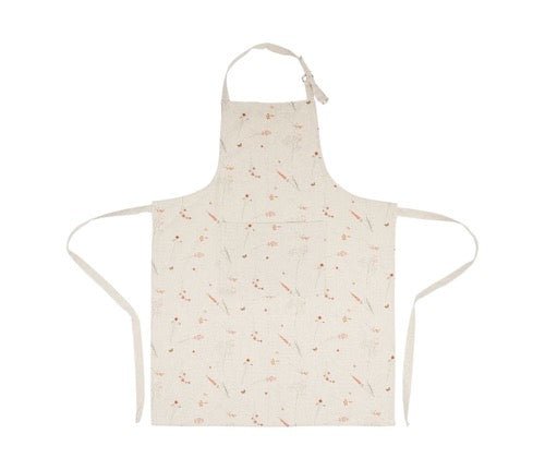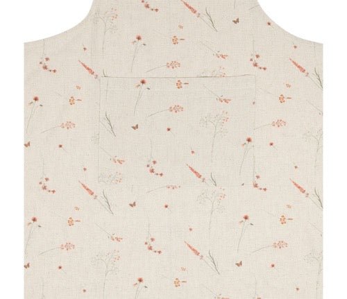 Precioso delantal fabricado en algodón y lino ajustable con anilla metálica con colores rojo y beige.